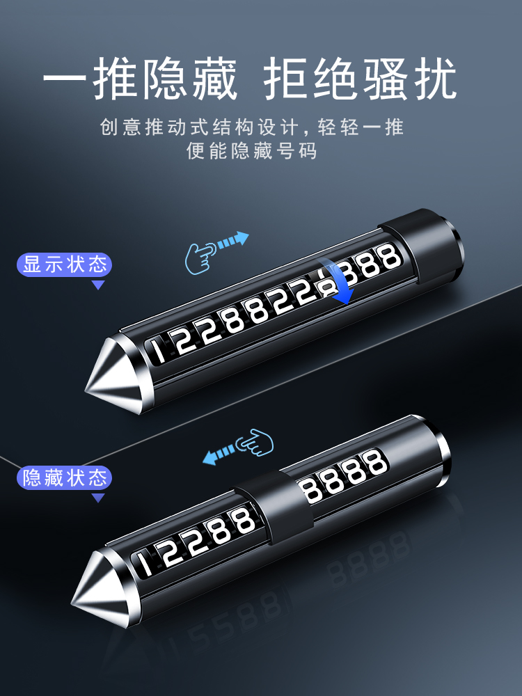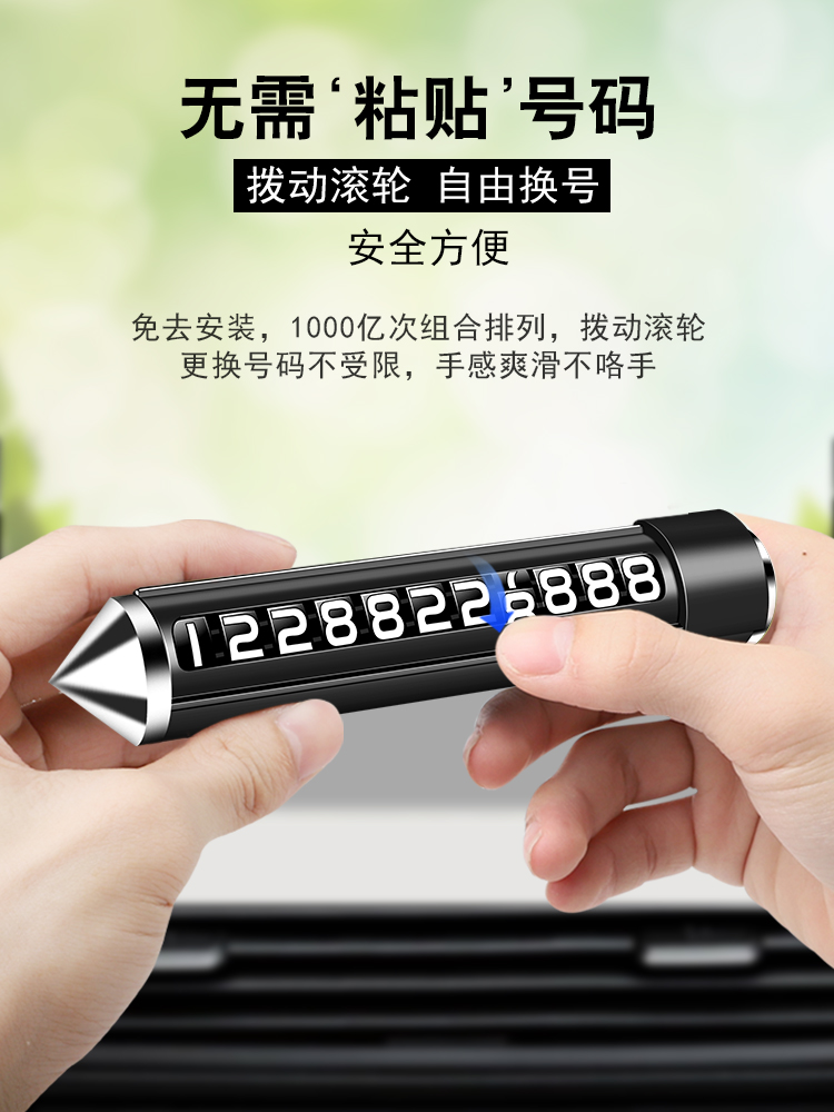 Car temporary parking phone number plate two-in-one belt car safety hammer luminous moving license plate moving card