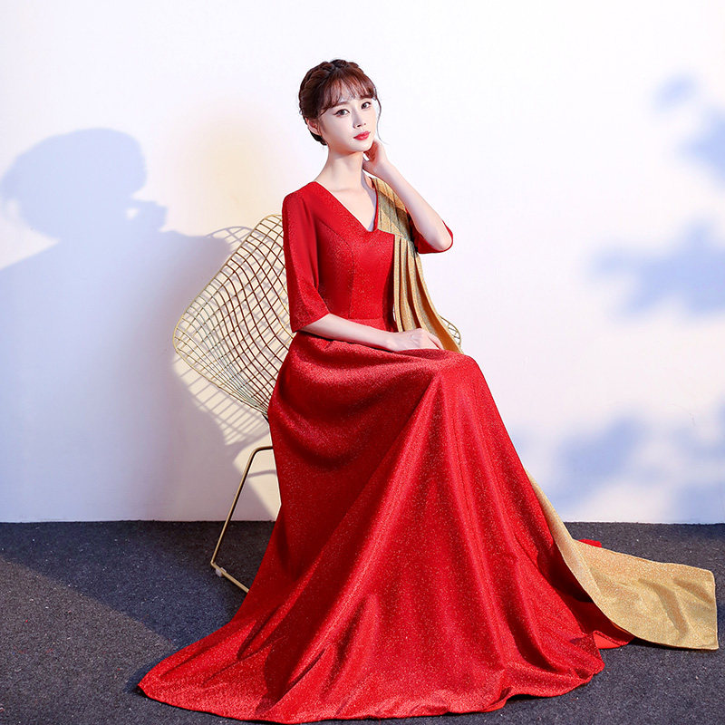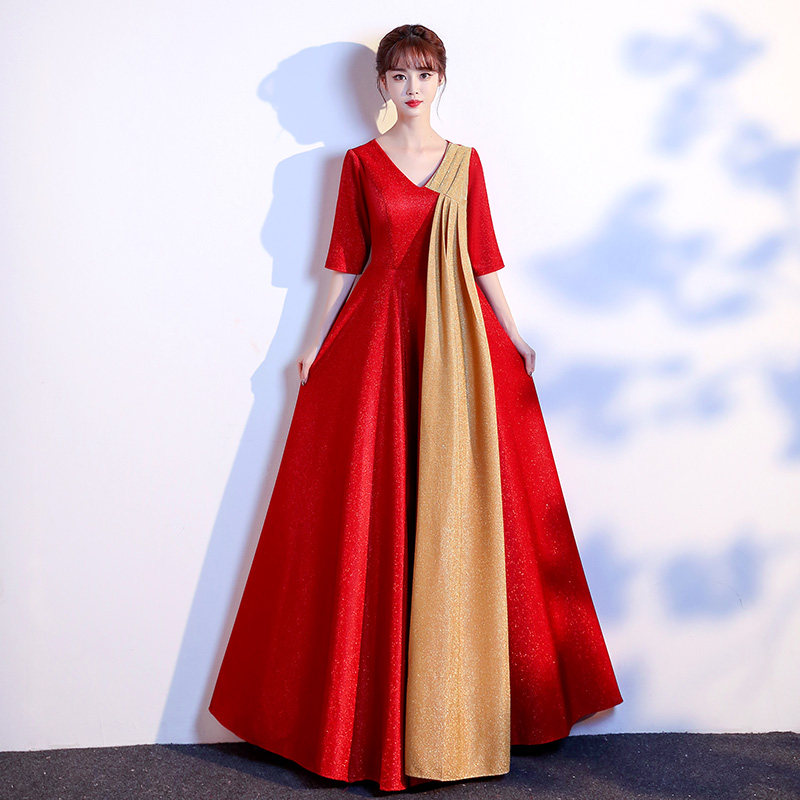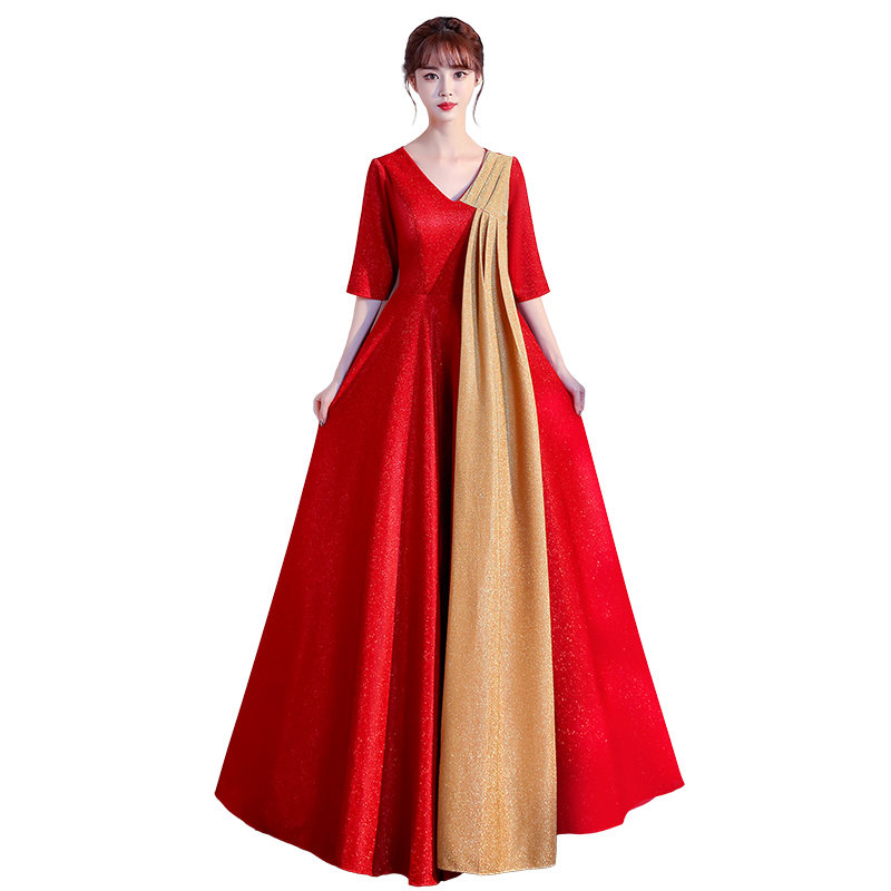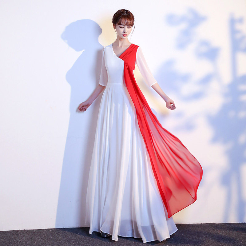 Grand choir performance dress female long skirt 2022 new temperament large size dress red song competition performance slimming clothing