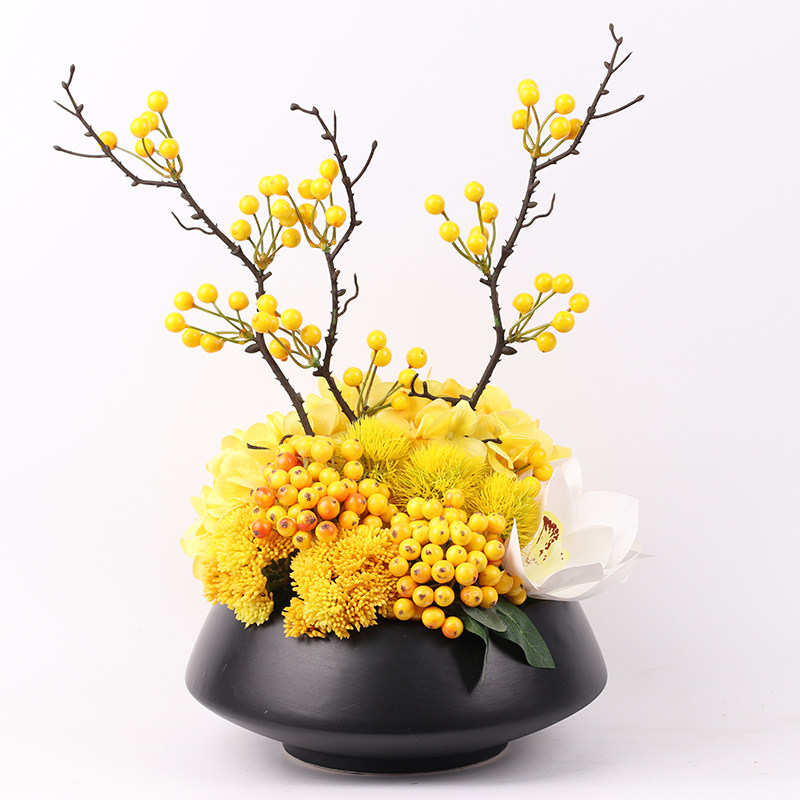 New Chinese-style simulation flower art small potted green plant fake flower bonsai model room coffee table living room dining table decorations