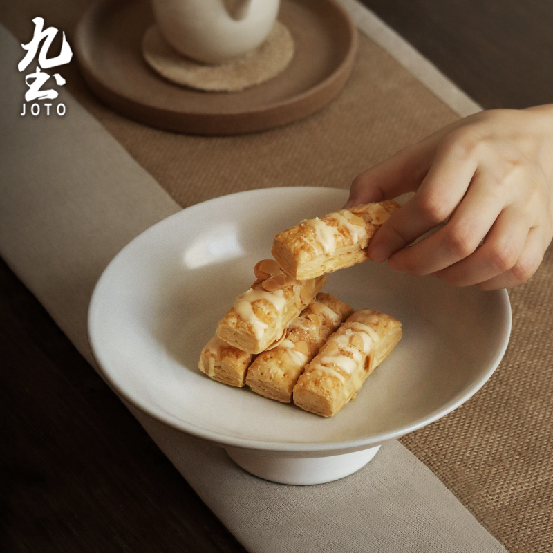 Jiutu Japanese-style ceramic high-foot fruit plate retro refreshment plate for plate pastry tribute plate snack plate dessert tray