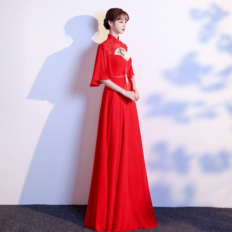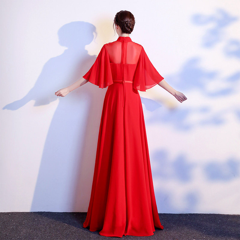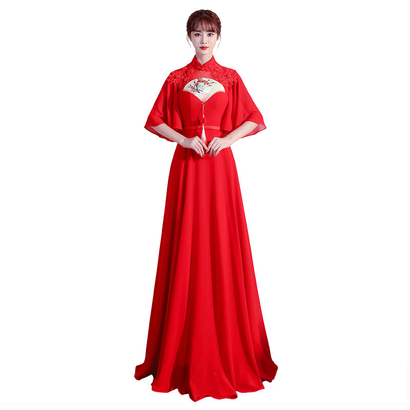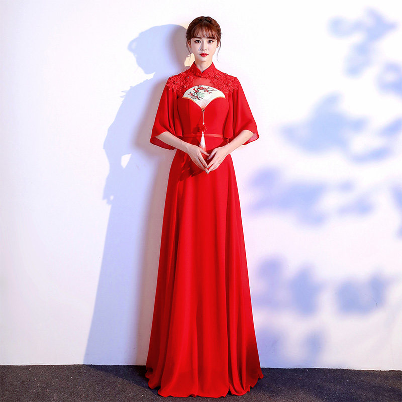 Cantata performance costume female long skirt 2022 new Chinese style catwalk recitation guzheng performance red song competition clothing