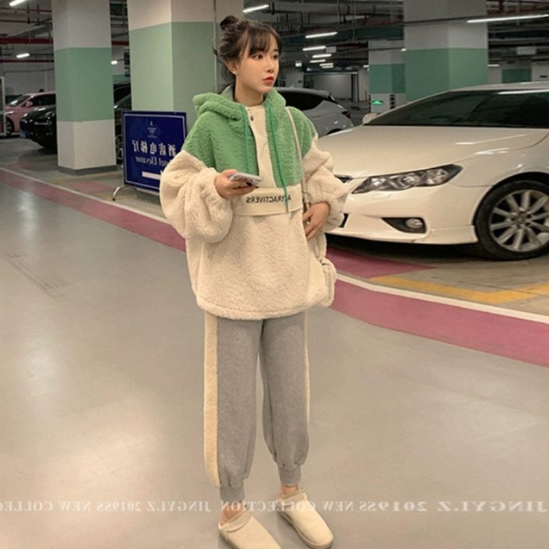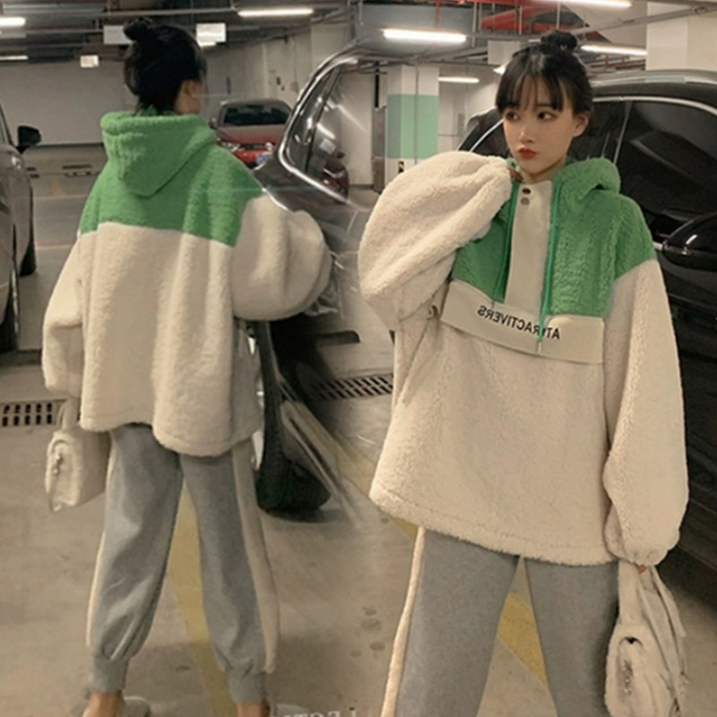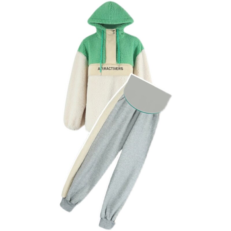 Green collared light grey splicing Bellied Pants Green Parched White Sweatshirt Light Grey Splice Nursery Pants