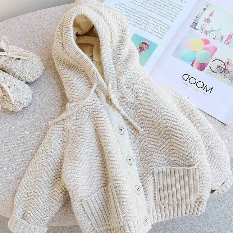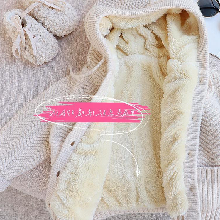 Girls sweater cardigan autumn and winter 2022 new style plus velvet thickened Western style lamb velvet jacket children's baby top