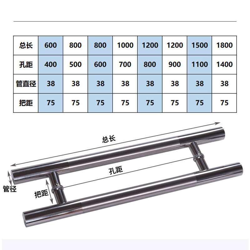 304 thickened stainless steel large handle round tube handle sliding door handle glass door sliding door handle drawing handle