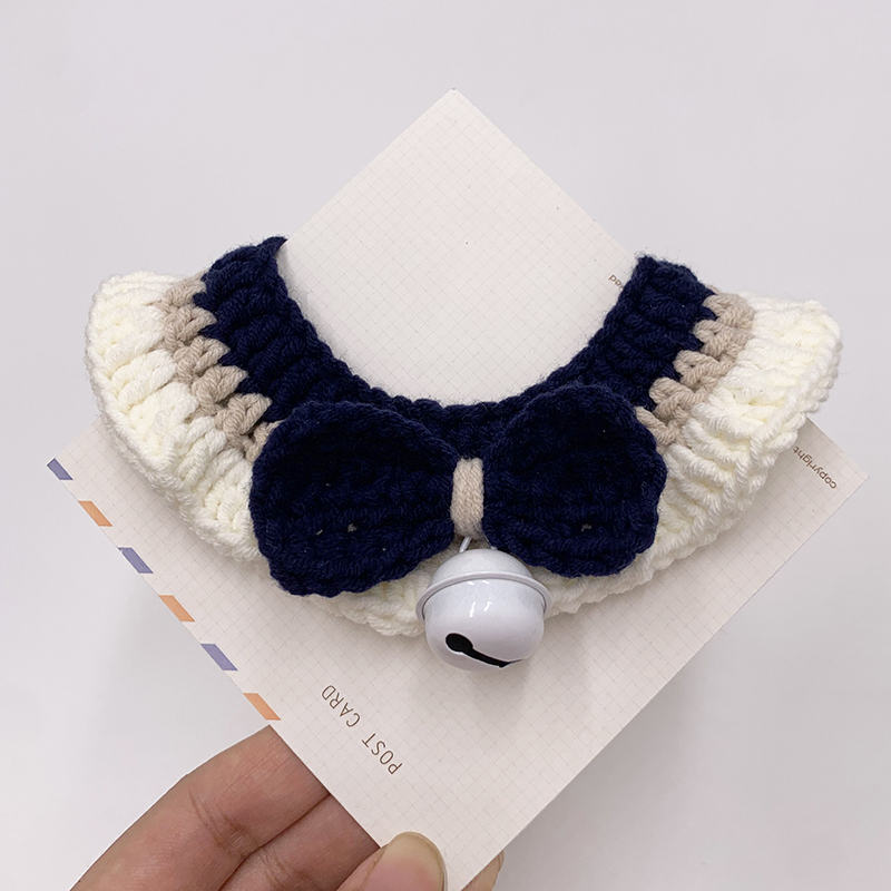 New Year cat cute collar bow tie handmade pet knitting British short kitten rabbit Teddy bell scarf decoration