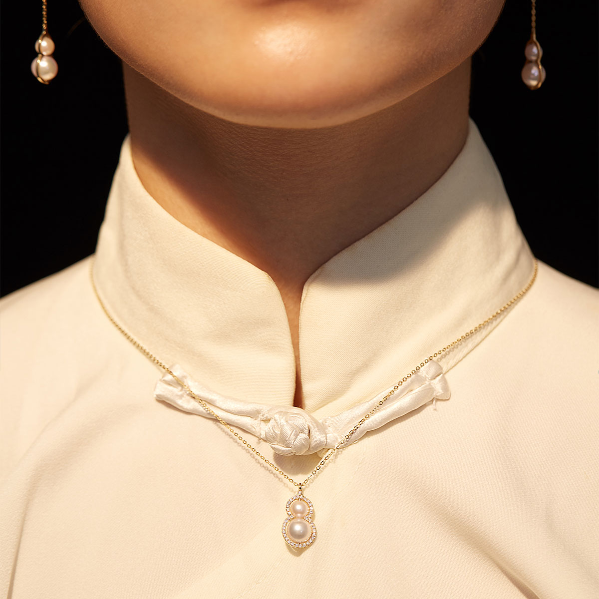 HeyJewel Original Design Beauty Gloriel Light Foru Plinth 18k Gold Akoya Pearl Necklace Women's Fashion Personality