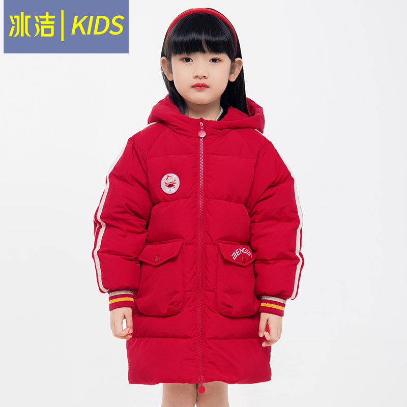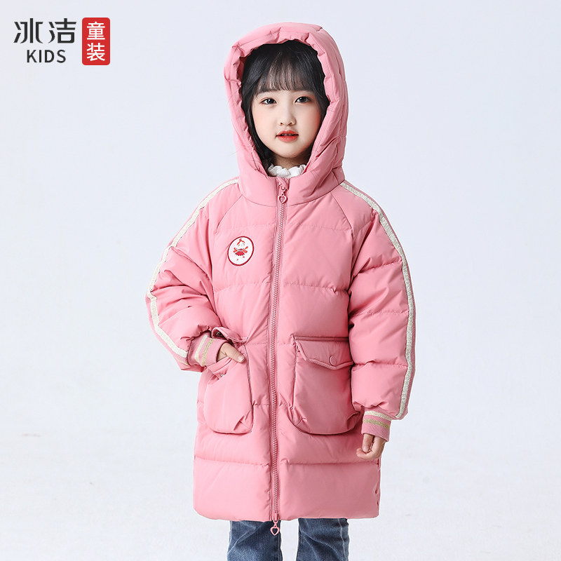 Bingjie children's down jacket 2022 winter new girls' mid-length hooded middle-aged and big children's thickened fashion jacket