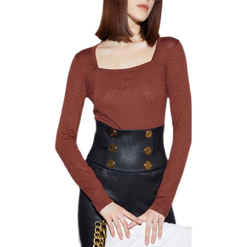 Z boss square collar jumpsuit woolen bottoming shirt minimalist atmosphere slim Joker design style bottoming shirt women