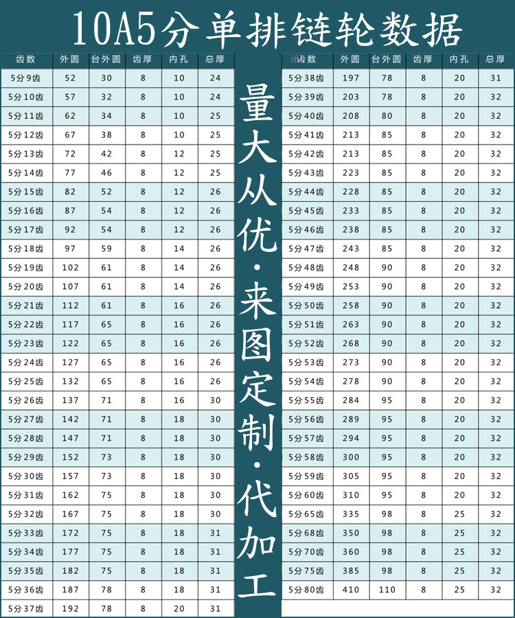 5 minutes 10 tooth diameter 57 inner hole 105 minutes 11 tooth diameter 62 inner hole 105 minutes 12 tooth diameter 67 inner hole 105 minutes 13 tooth diameter 72 inner hole 125 minutes 14 tooth diameter 7
