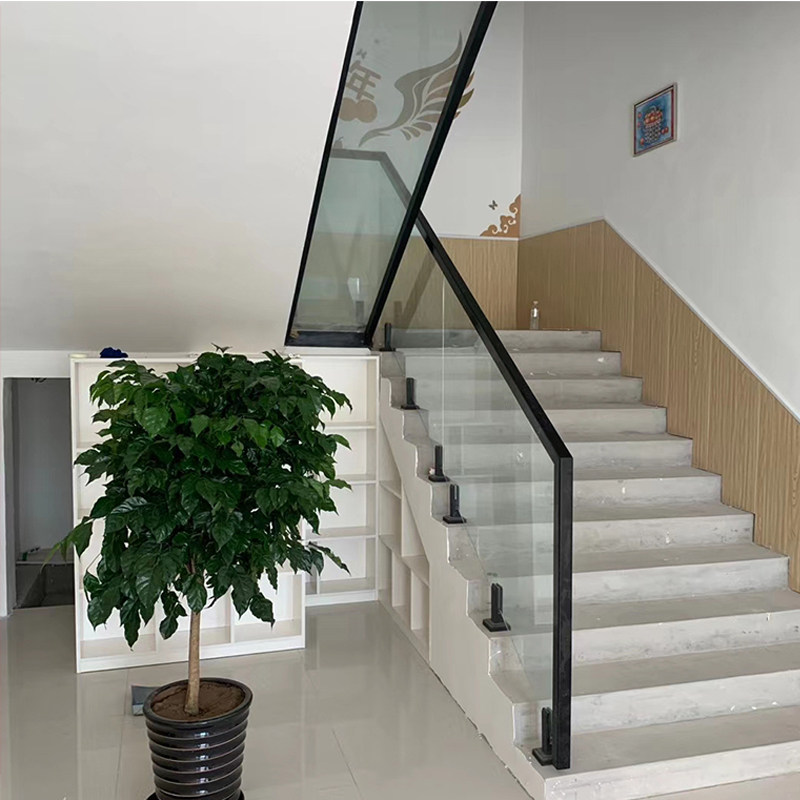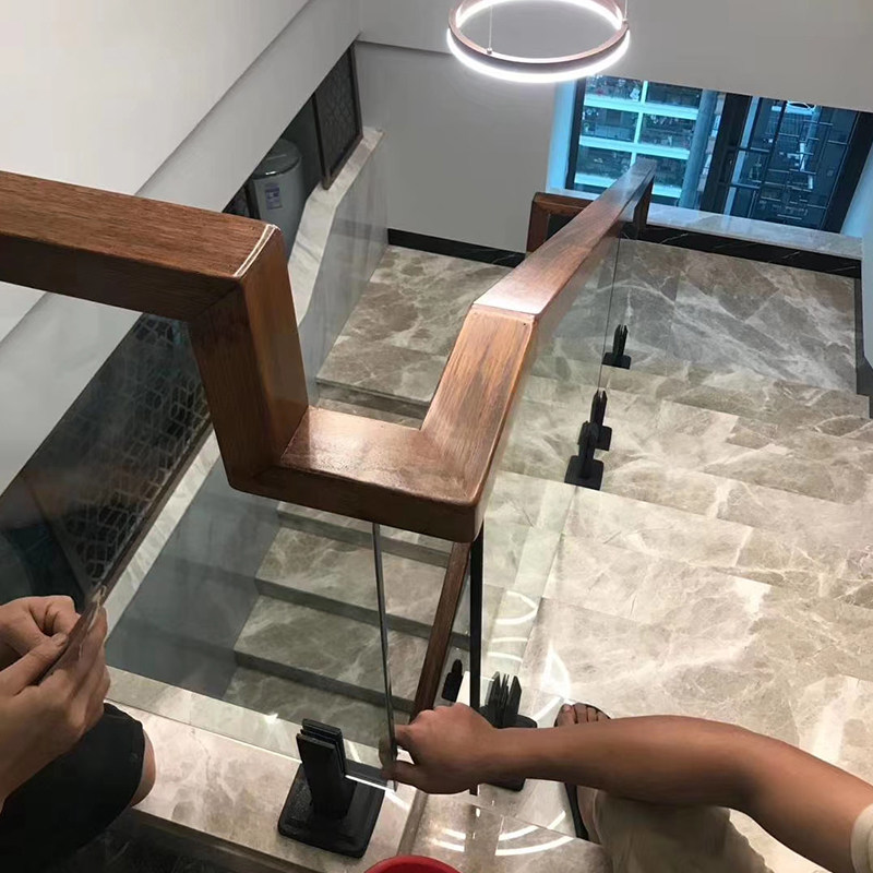 Simple net red glass solid wood modern staircase aluminum alloy pool clamp stainless steel groove armrest column