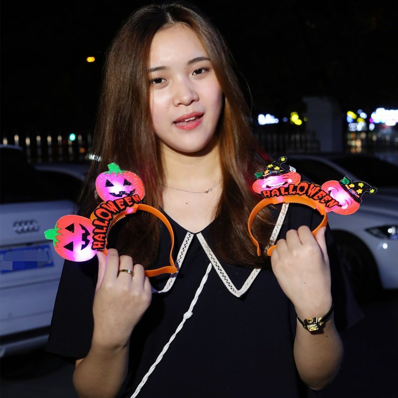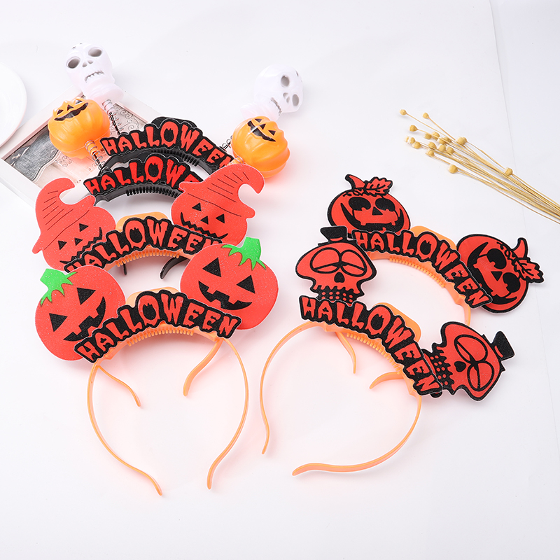 Green leaf pumpkin headband Wizard hat pumpkin headband Evil pumpkin headband Spring letter pumpkin headband Spring multi-head pumpkin headband Spring bat pumpkin headband Green leaf pumpkin fiber optic hairband