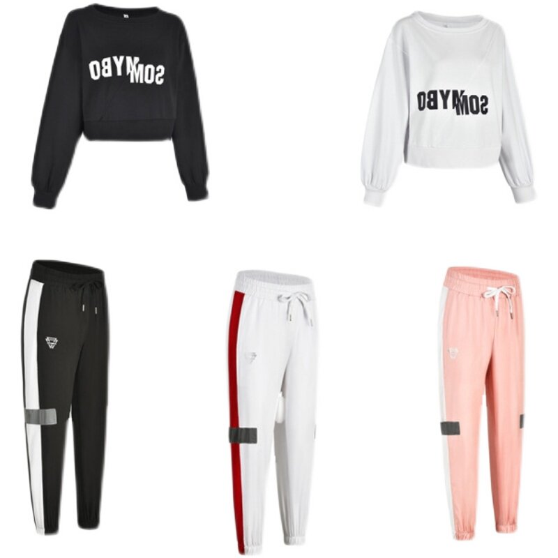 White long sleeves pink trousers black long sleeves black long pants white long sleeves white long sleeves pink long pants black bra black long sleeves black long pants black bra white long sleeves white