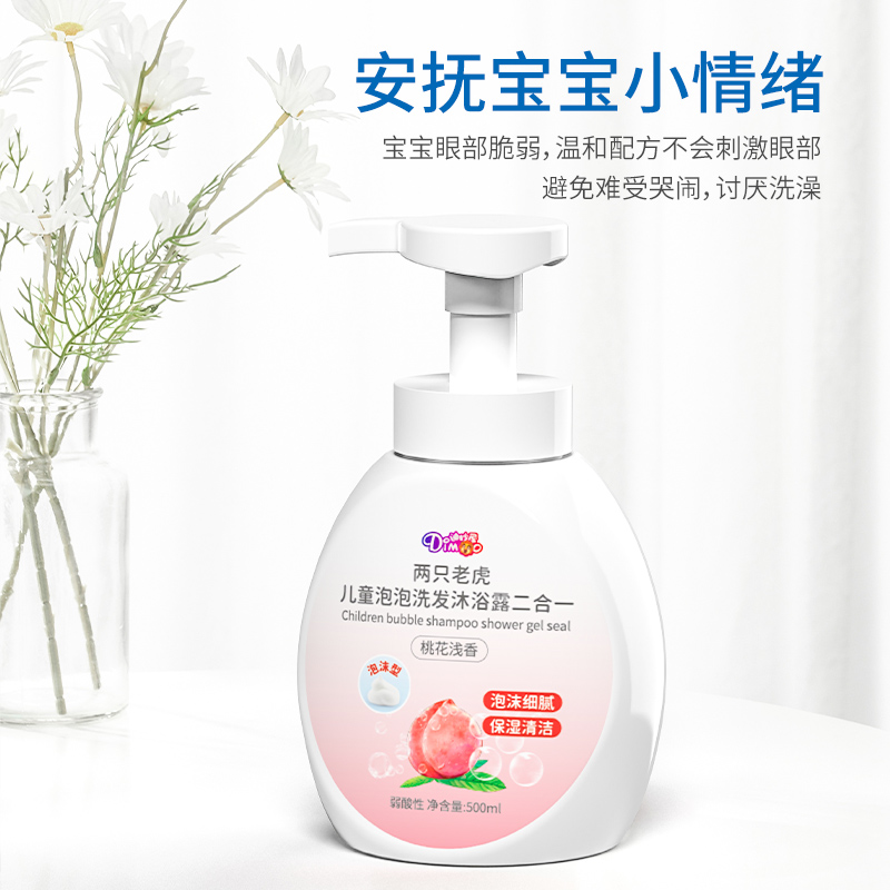 Children's bath shampoo two in one baby special bathing suit 500ml foam pressed bottle bathing milk