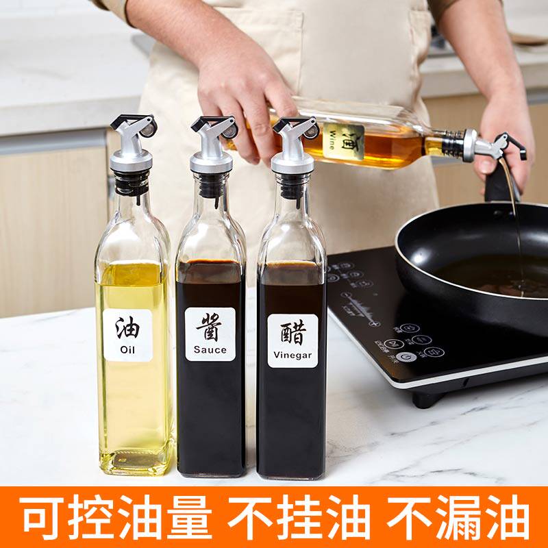 Kitchen automatic opening and closing oil bottle mouth pour grease nozzle cork leak proof sauce vinegar wine bottle quantitative mouth lid glass oil bottle oil pot