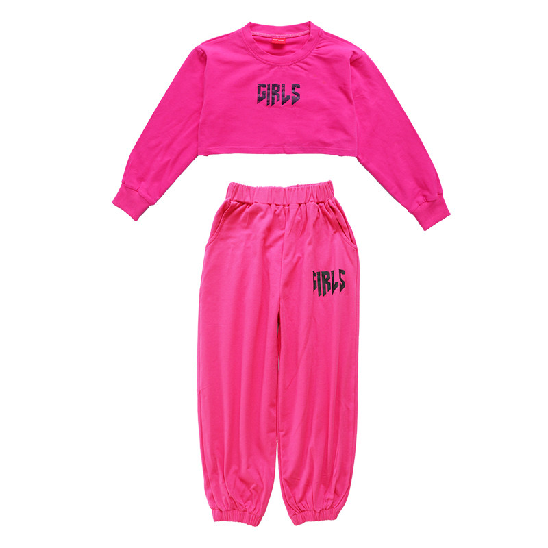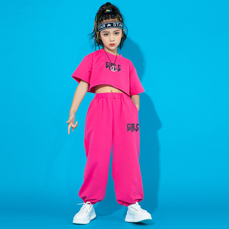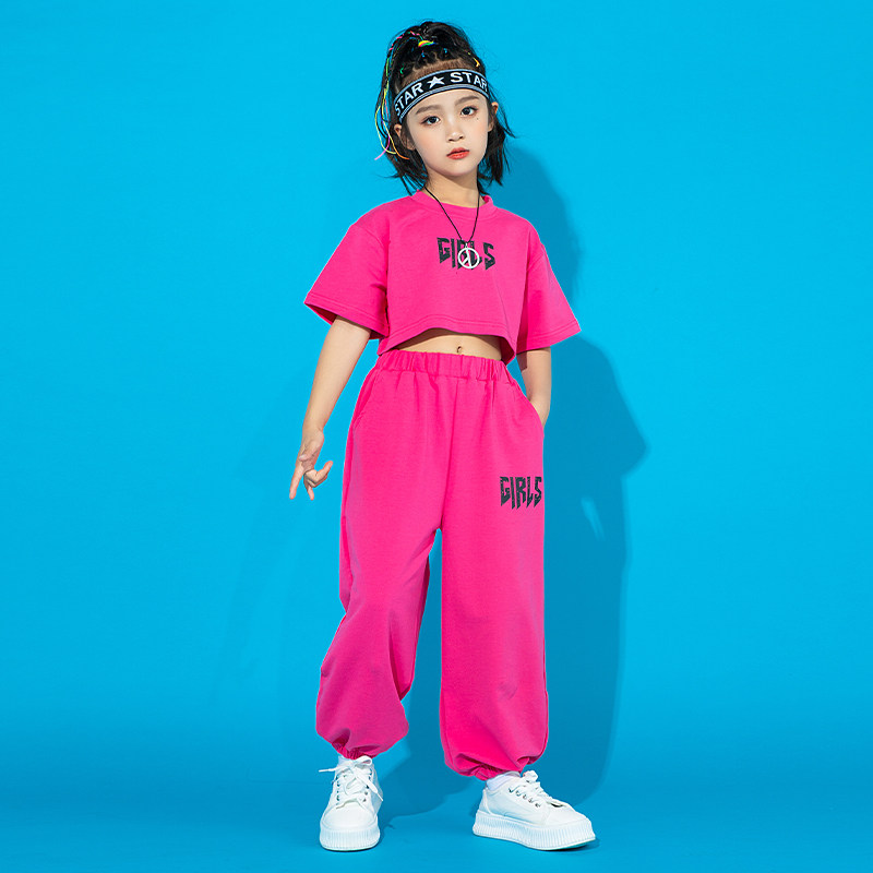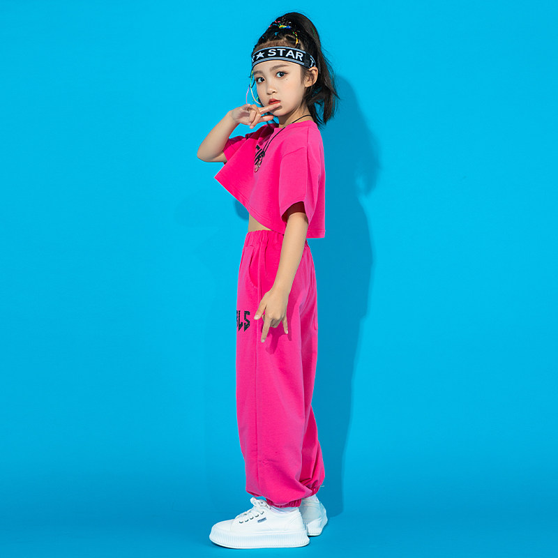 Dance Suit Children Female Short Sleeve Street Dance Suit Girl Jazz Dance out of the girl's navel show Walk Show Wave