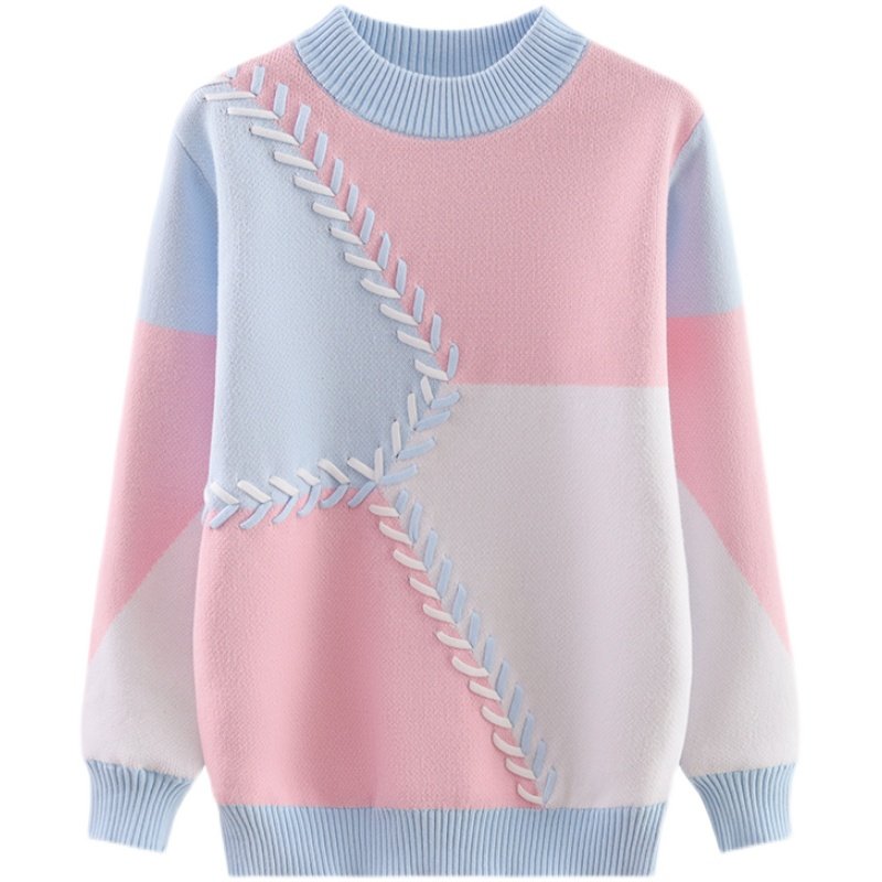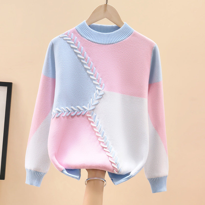 Girls' cotton sweater 2021 children's autumn and winter middle-aged children's plus velvet thickened girl's top knitted sweater Western style Korean version