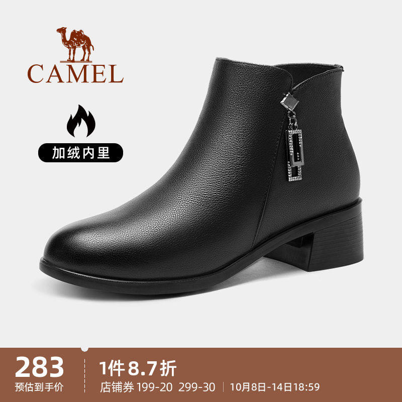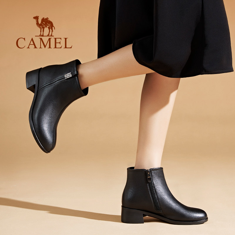 Camel fitness foot music women's shoes autumn and winter new leather boots ladies Chelsea boots plus velvet short boots warm mother shoes