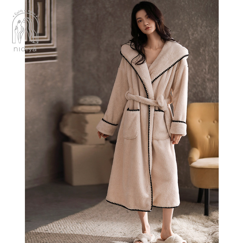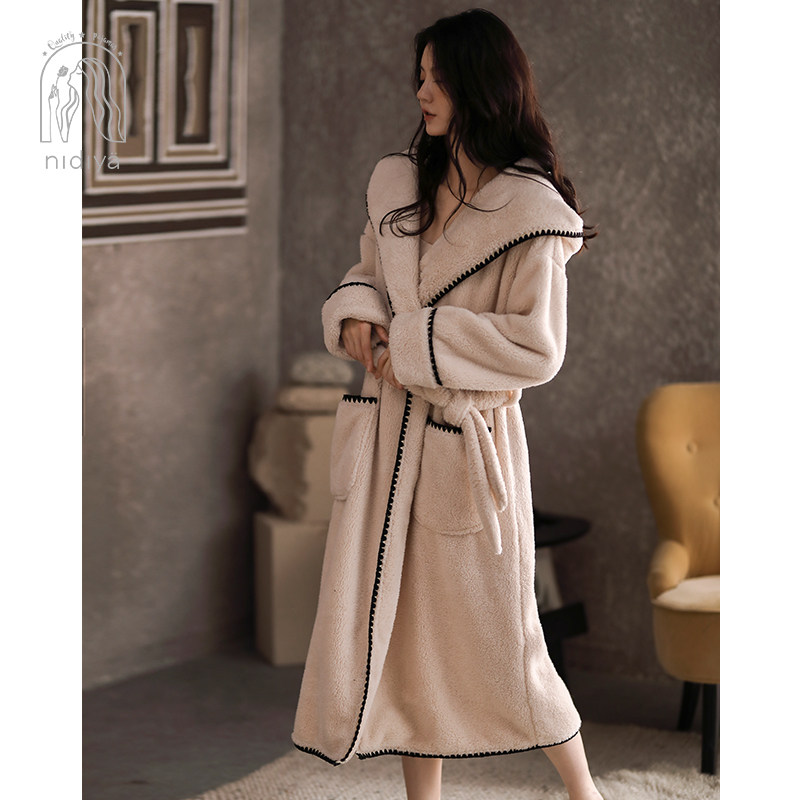 Nedia pajamas dressing gown female winter warm glutinous coral velvet and long minimal fashion home suit