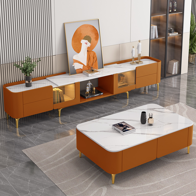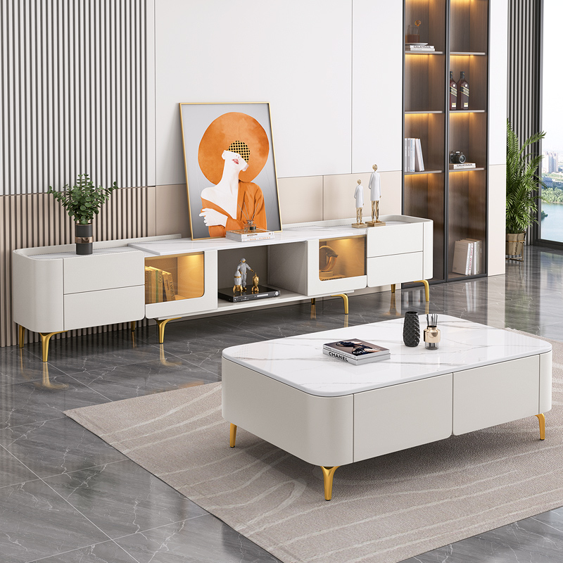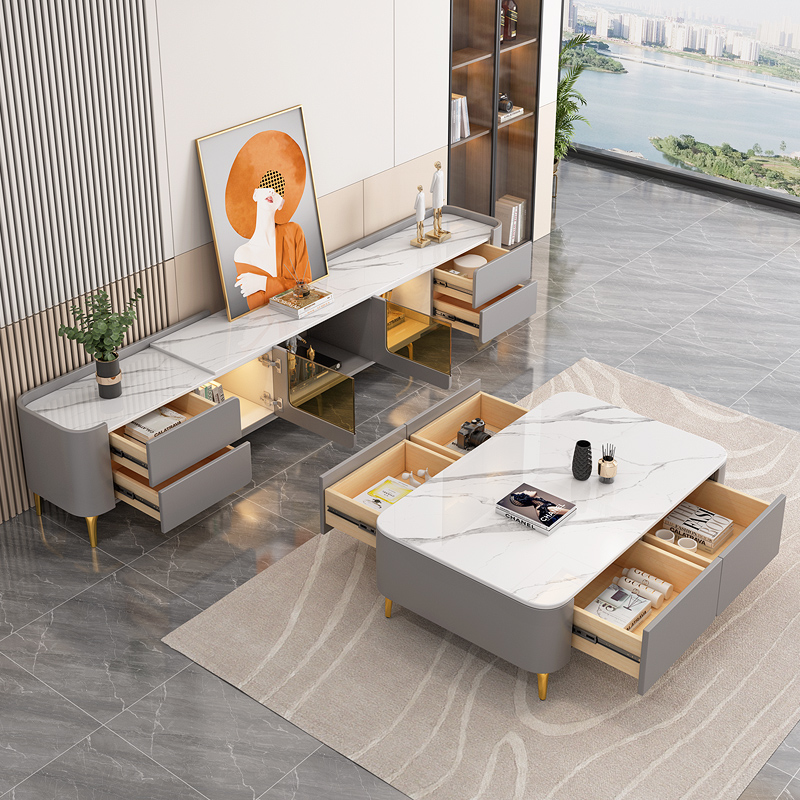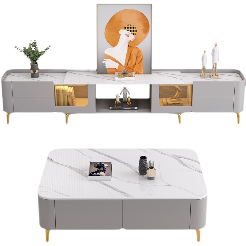 Solid wood light luxury marble slate TV cabinet coffee table combination modern minimalist small apartment bedroom living room floor cabinet