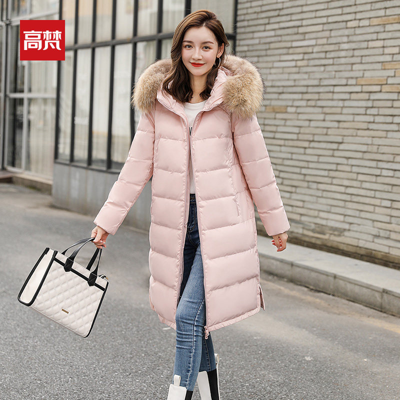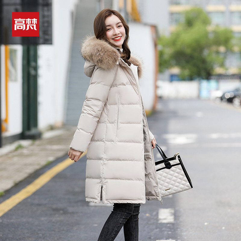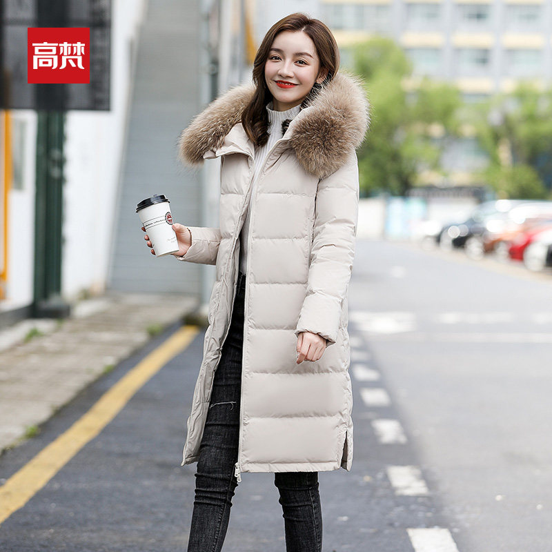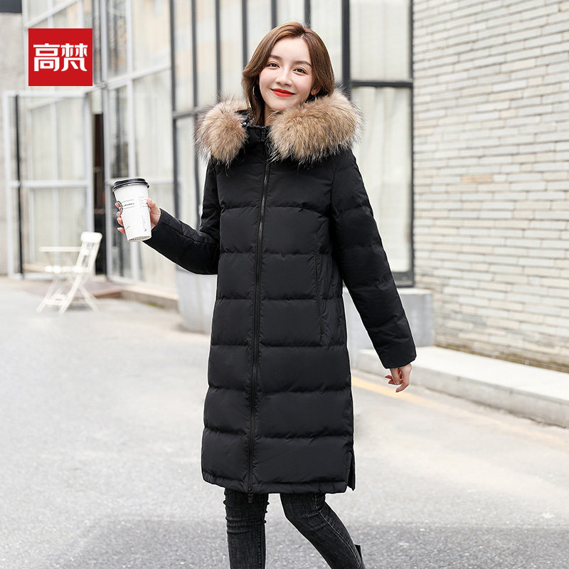 Gauvan long version down jacket women's over the knee 2022 new hot style mid-length version real fur collar winter brand coat tide
