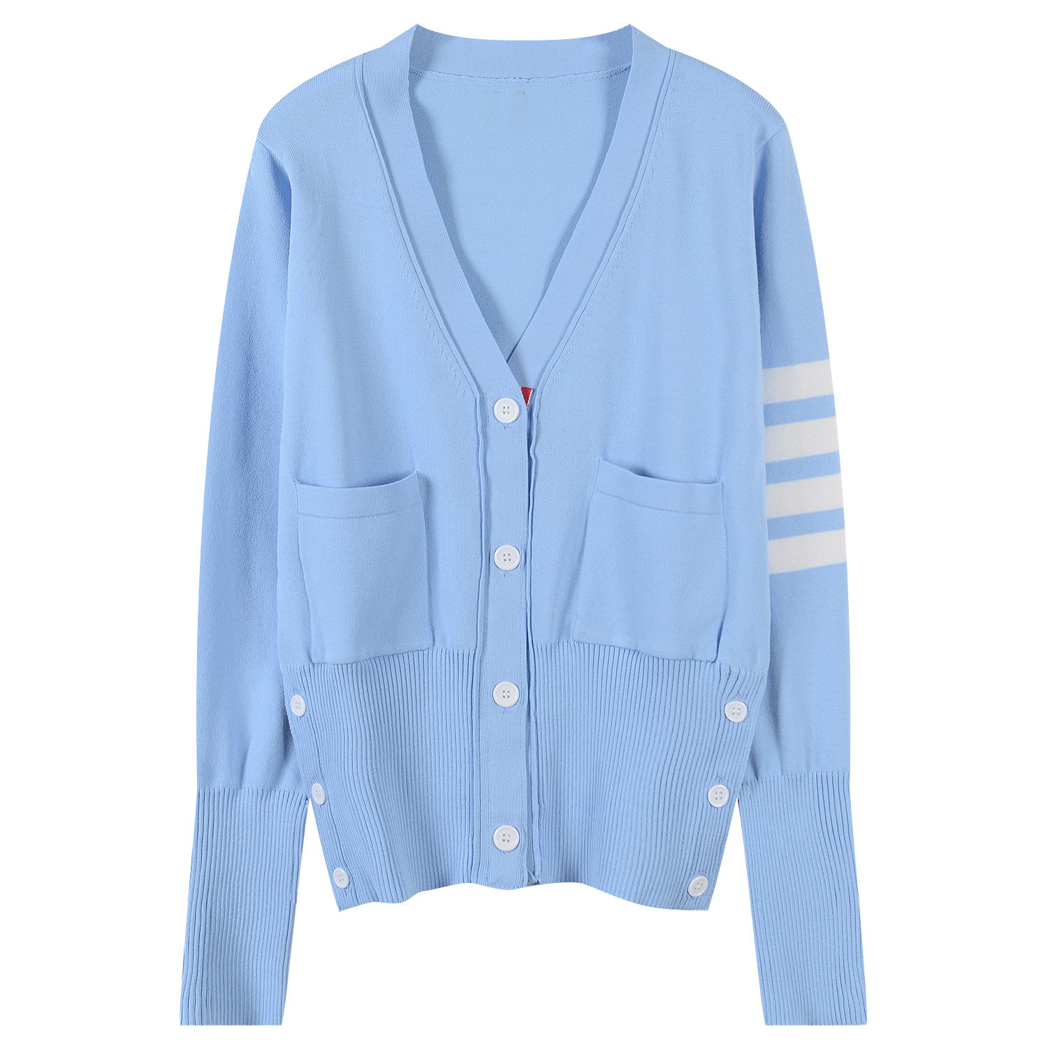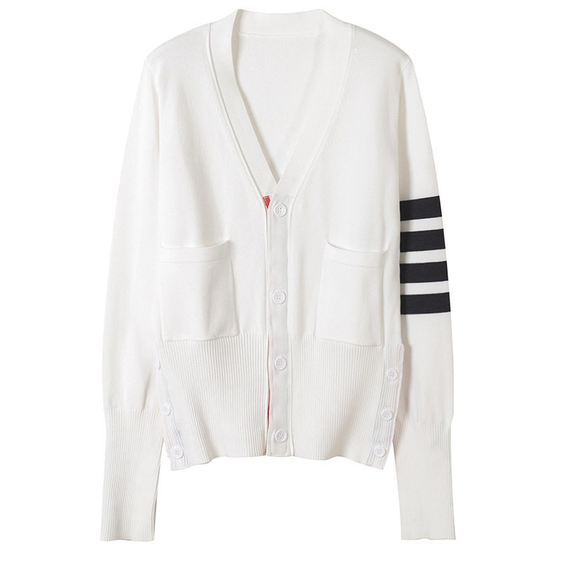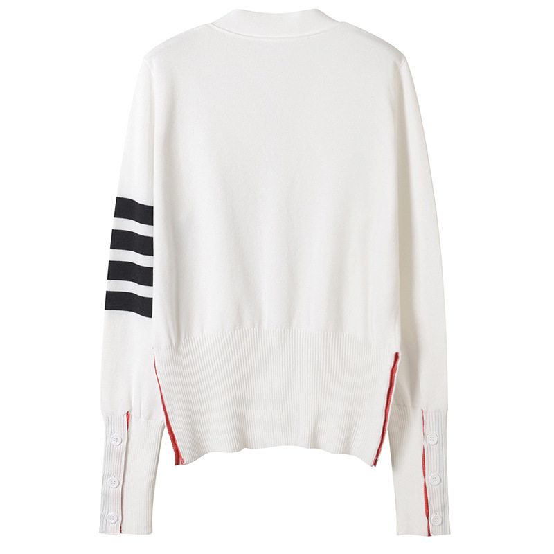 TBV Collage Flag Strip Coat Rise Breaky Lady Commuter Wave Waves Clothes White Clothes and Cutting Sweater