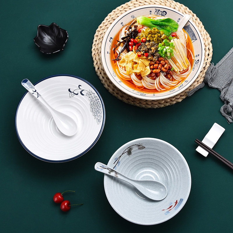 Top Gamiamine Resin Cutlery Noodle Bowl Commercial Imitation Porcelain Plastic Rice Noodle Soup Bowl Linen Hot Noodle Special Bowl 10