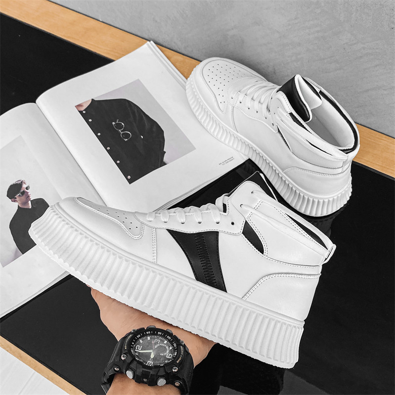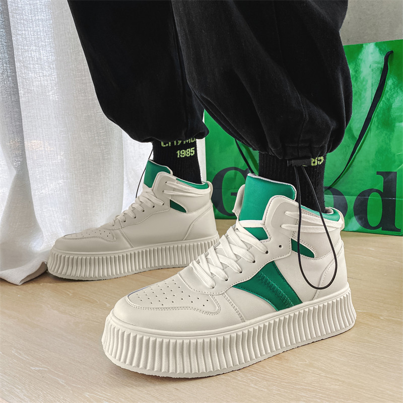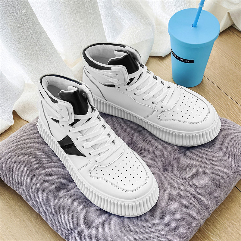 Men's shoes spring Korean version 100 lapped thick bottom high barrel aj Air Force One leisure sports inside heightening white trendboard shoes