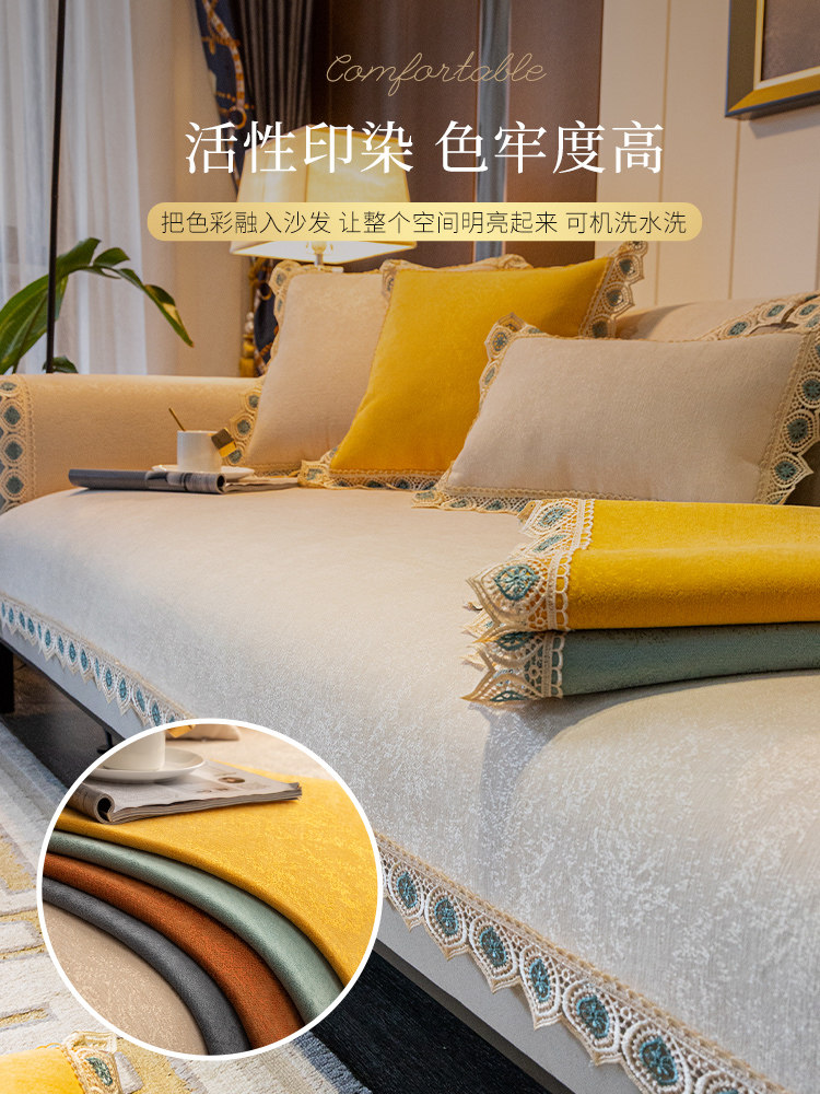 Light luxury sofa cushion modern minimalist American high-end leather sofa cushion four seasons universal non-slip cover towel