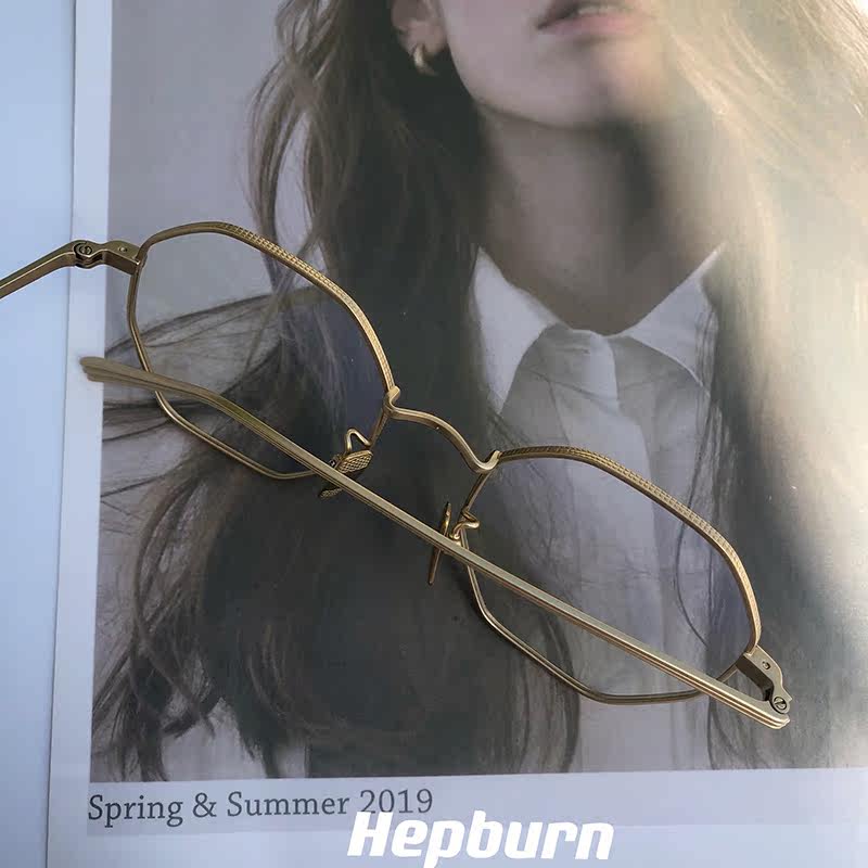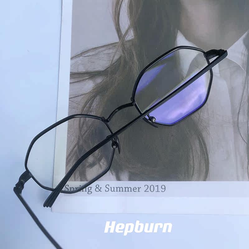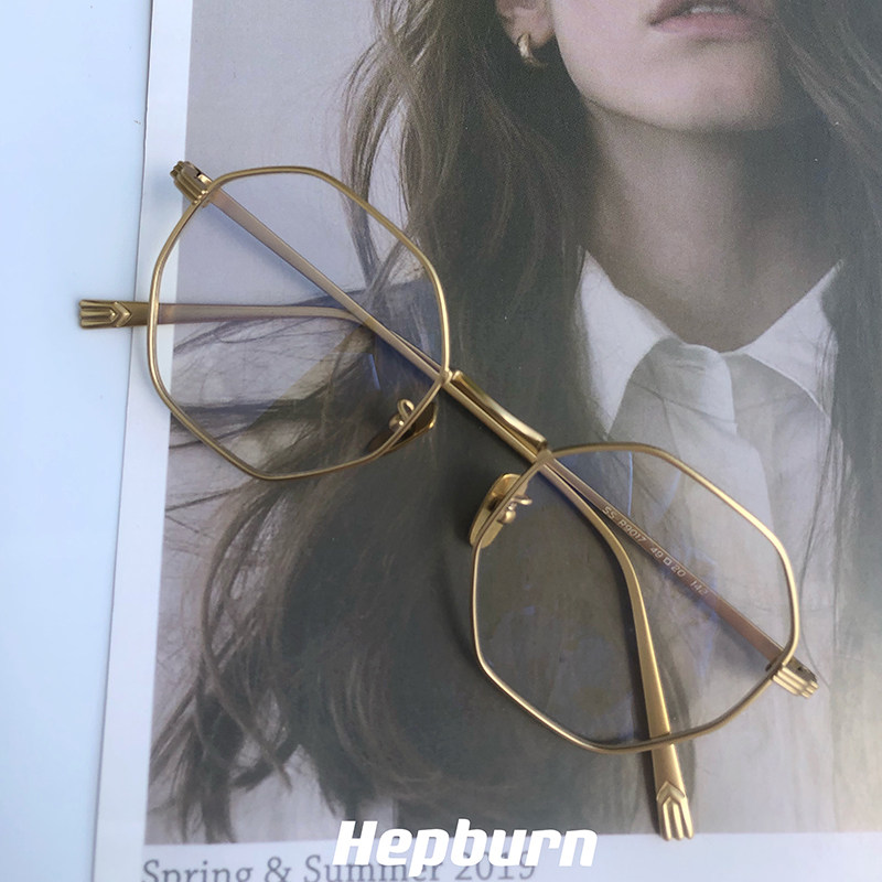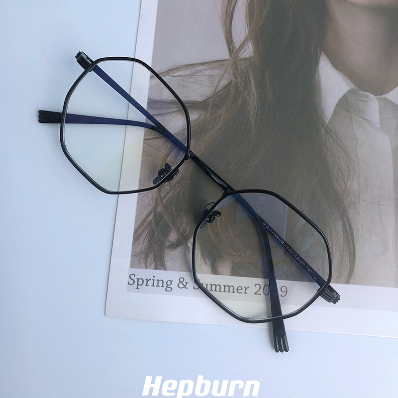 Personality niche unique polygonal glasses frame female pure titanium advanced flat light anti-blue light can be matched with myopia glasses