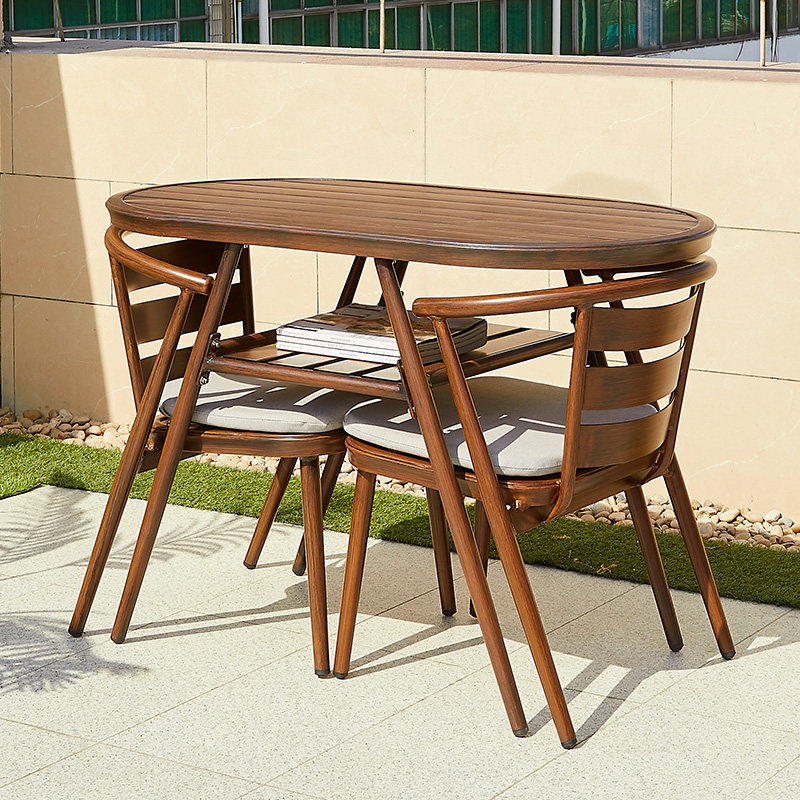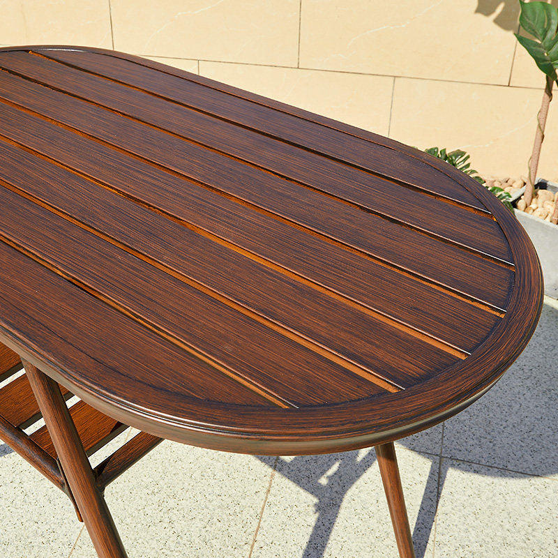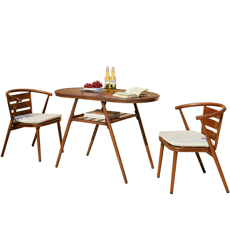 2 aluminum chair deep wood grain color 2 pull rope chair light wood grain color 2 aluminum chair light wood grain color 2 pull rope chair 1 ellipses round table (60 * 110) light wood grain color 2 aluminum chair 1 ellipses round table (6