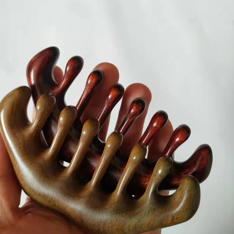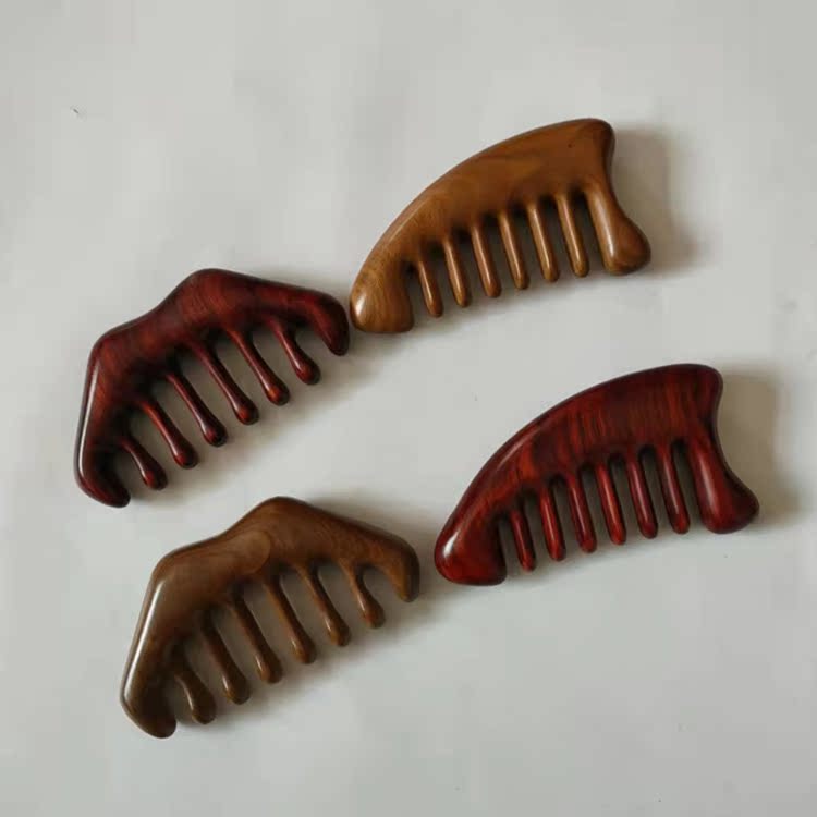 Rosewood lip-shaped meridian comb Green sandalwood lip-shaped meridian comb Rosewood triangular meridian comb Green sandalwood triangular meridian comb