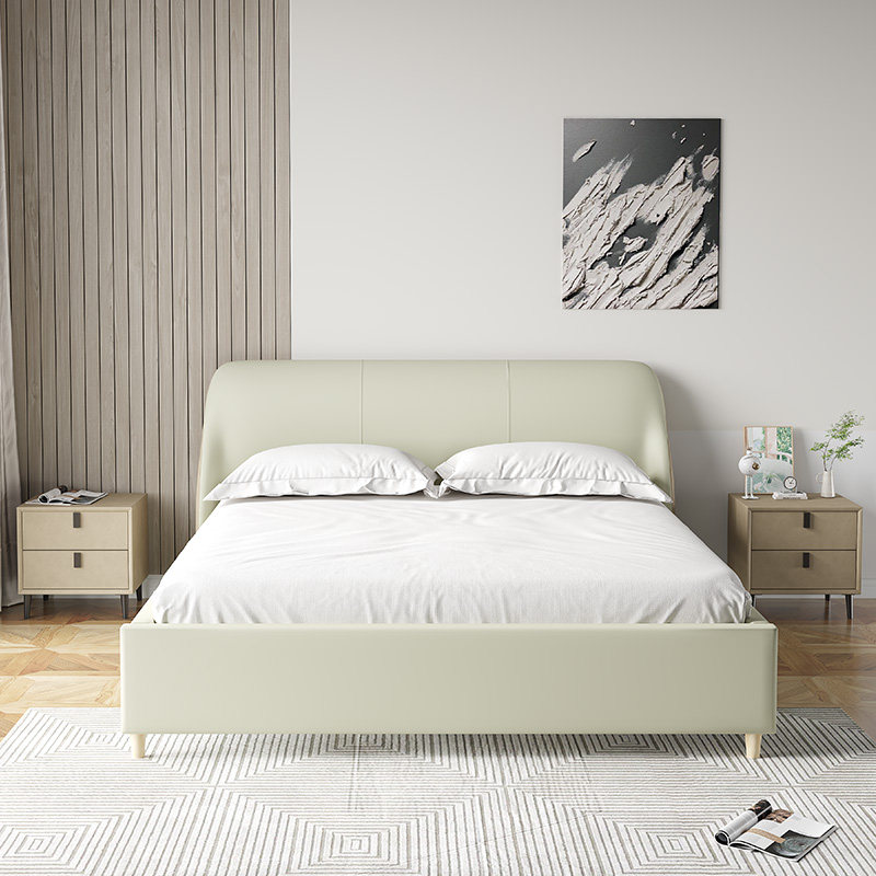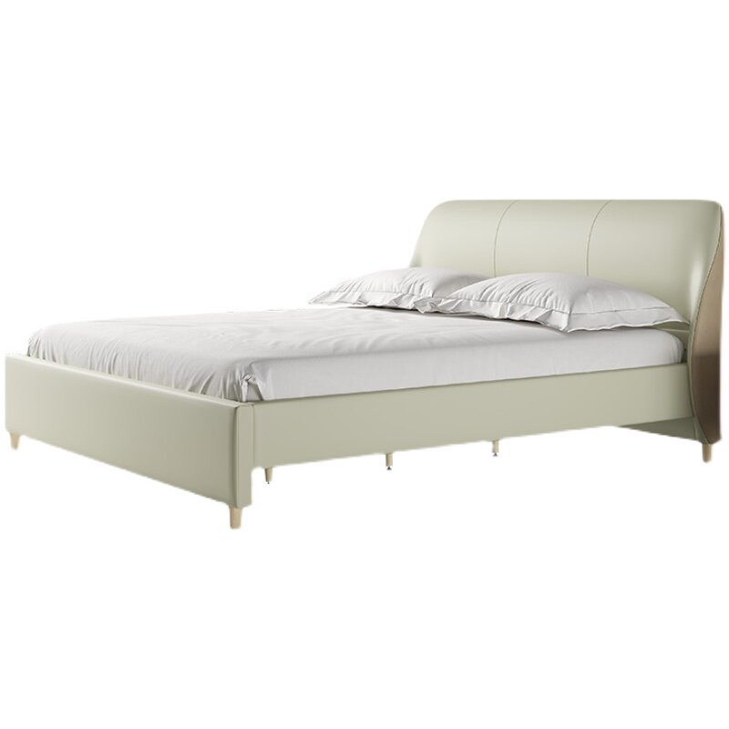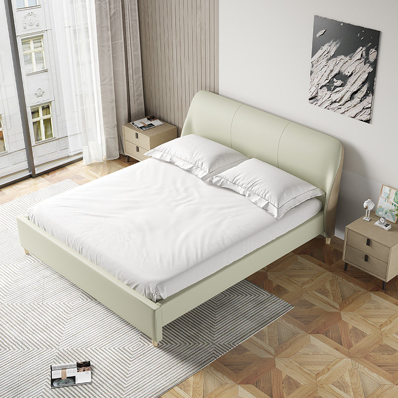 Dusha hyacinth bed light French technology leather bed double bed modern minimalist leather bed master bedroom beech color matching bed
