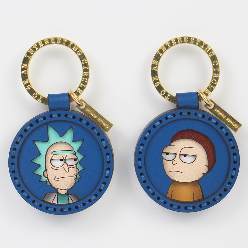 Handmade leather custom car keychain couple pendant pair of Rick Morty creative gift lettering pendant