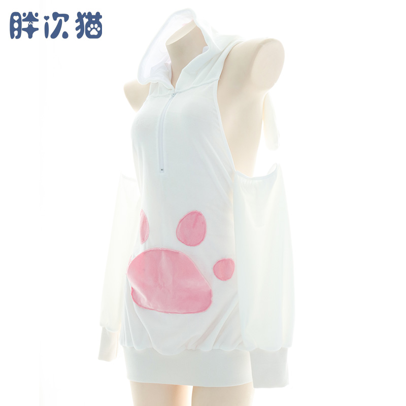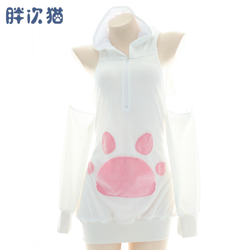 Original cat's paw plush sweatshirt Sexy hooded kitty kittle backless loungewear cos cat girl suit