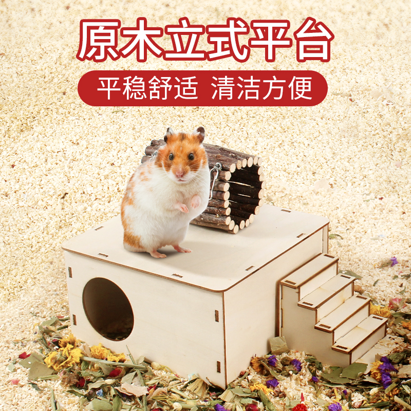 Hamster natural wooden fence landscaping platform springboard wooden bracket golden bear supplies pedal tunnel swing toy