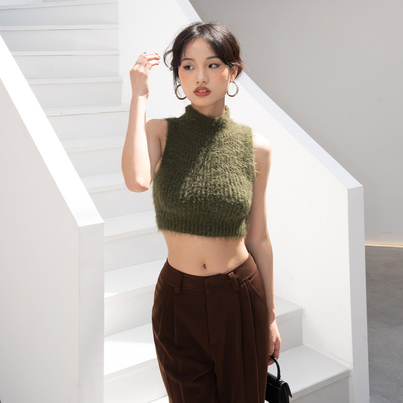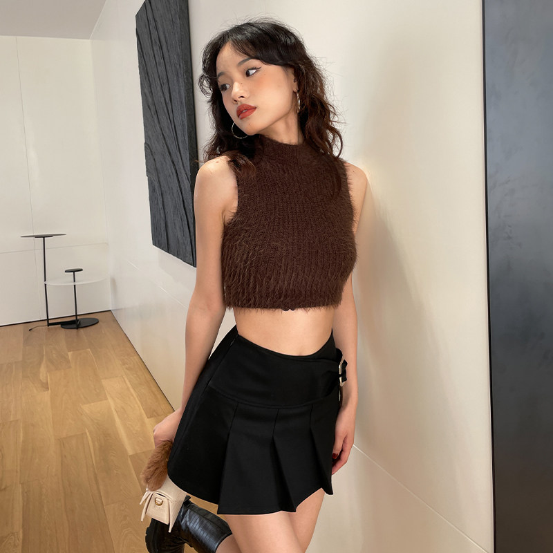 LEIYU Ma Haimao vest woman 2021 autumn and winter new sexy ruffles bottom sweater and American and American ins hot girl blouses