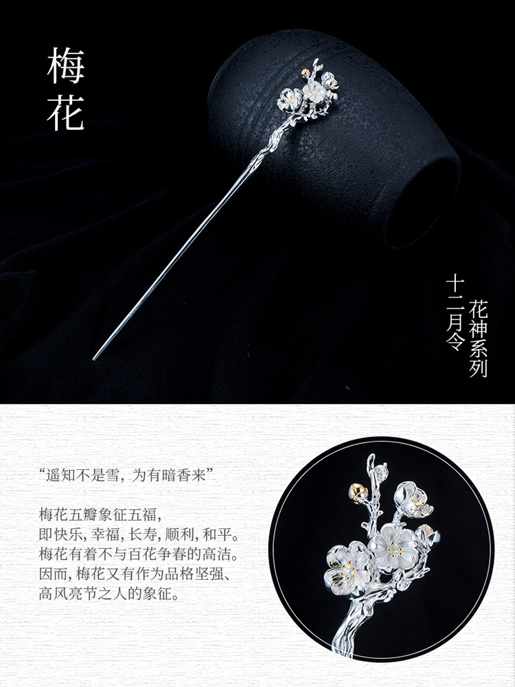January Plum Blossom Hair Hairpin February Apricot Flower Free Plate Hair Hairpin March Peach Blossom Free Plate Hair Hairpin April Peony Flower Free Plate Hair Hairpin May Pomegranate Flower Free Plate Hair Hairpin June Lotus