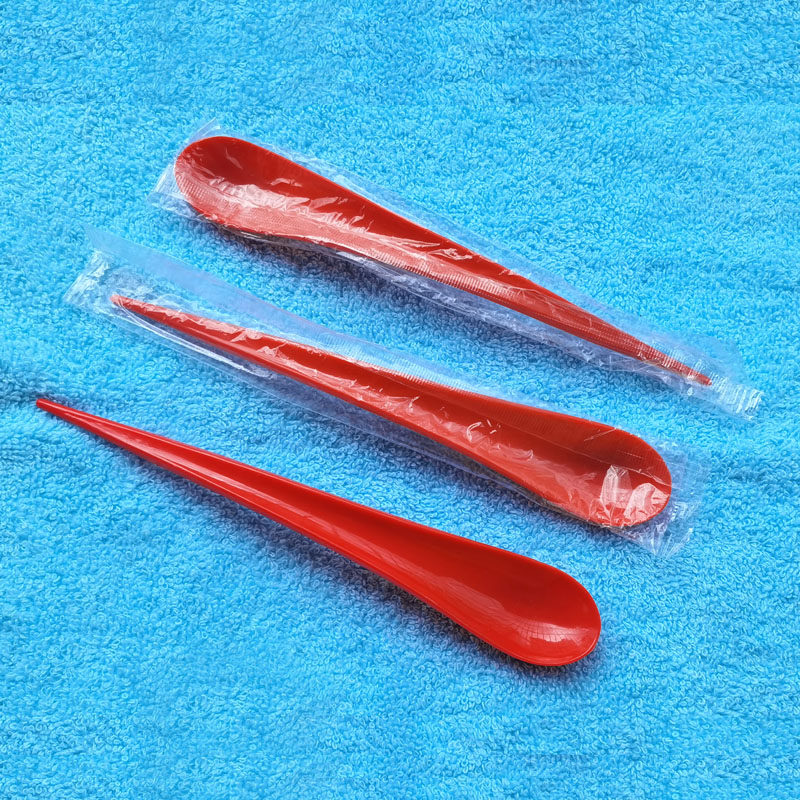 Disposable Spoon Long Handle Drop Spoon High Cup Red Long Spoon Alone Package Sweet Spoons Thickened Milkshake Yoghurt Spoon