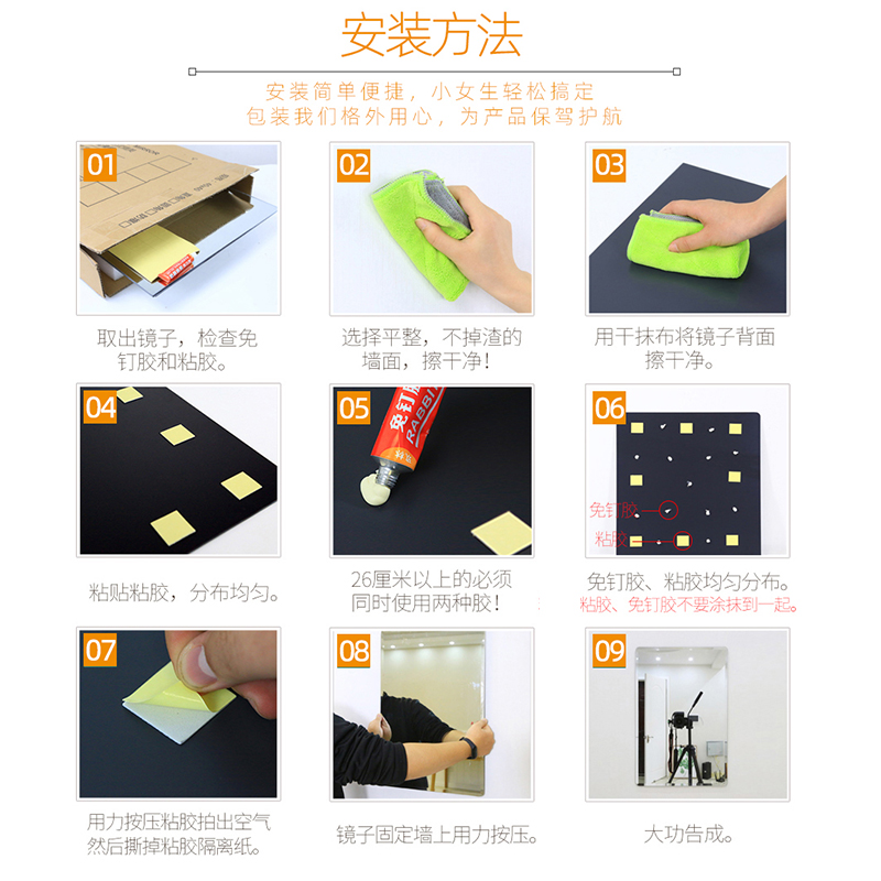 Home Full Body Mirror Self-Adhesive Wall Mirror Free Dorm Room Student Dorm Room Try Dressing Decorative Dresser