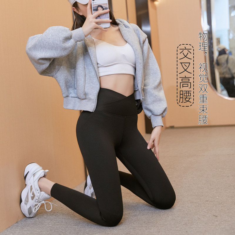 Shark pants Autumn V word crossed waist Barbie pants thicken tight outside wearing close-up hip-add-up yoga underpants woman