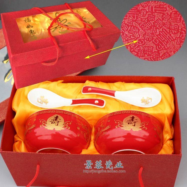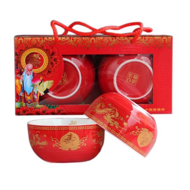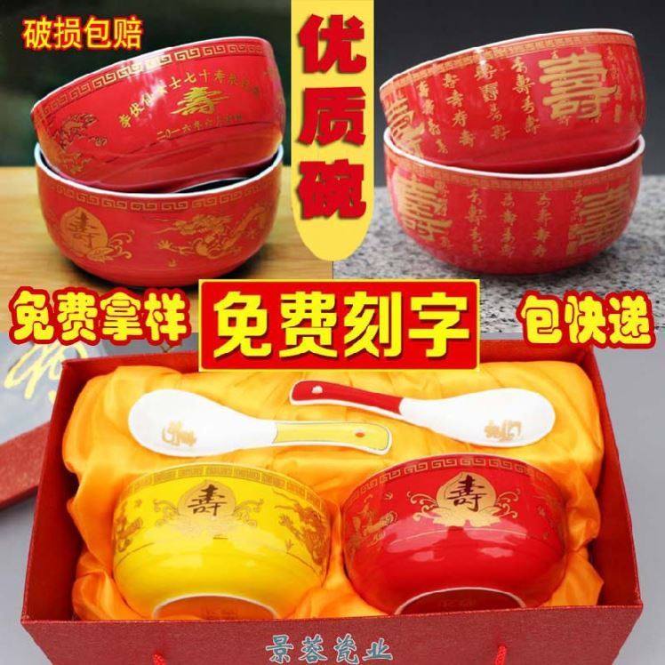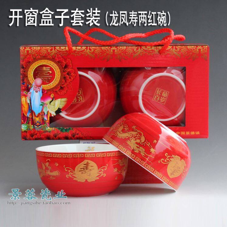 Longfengshou, one red, one yellow bowl, two spoons, red gold box set, Longfengshou single bowl, spoon, box, Longfengshou single bowl, spoon, box, gift bag, Longfengshou, one red and one yellow bowl, window box, golden birthday picture, single bowl