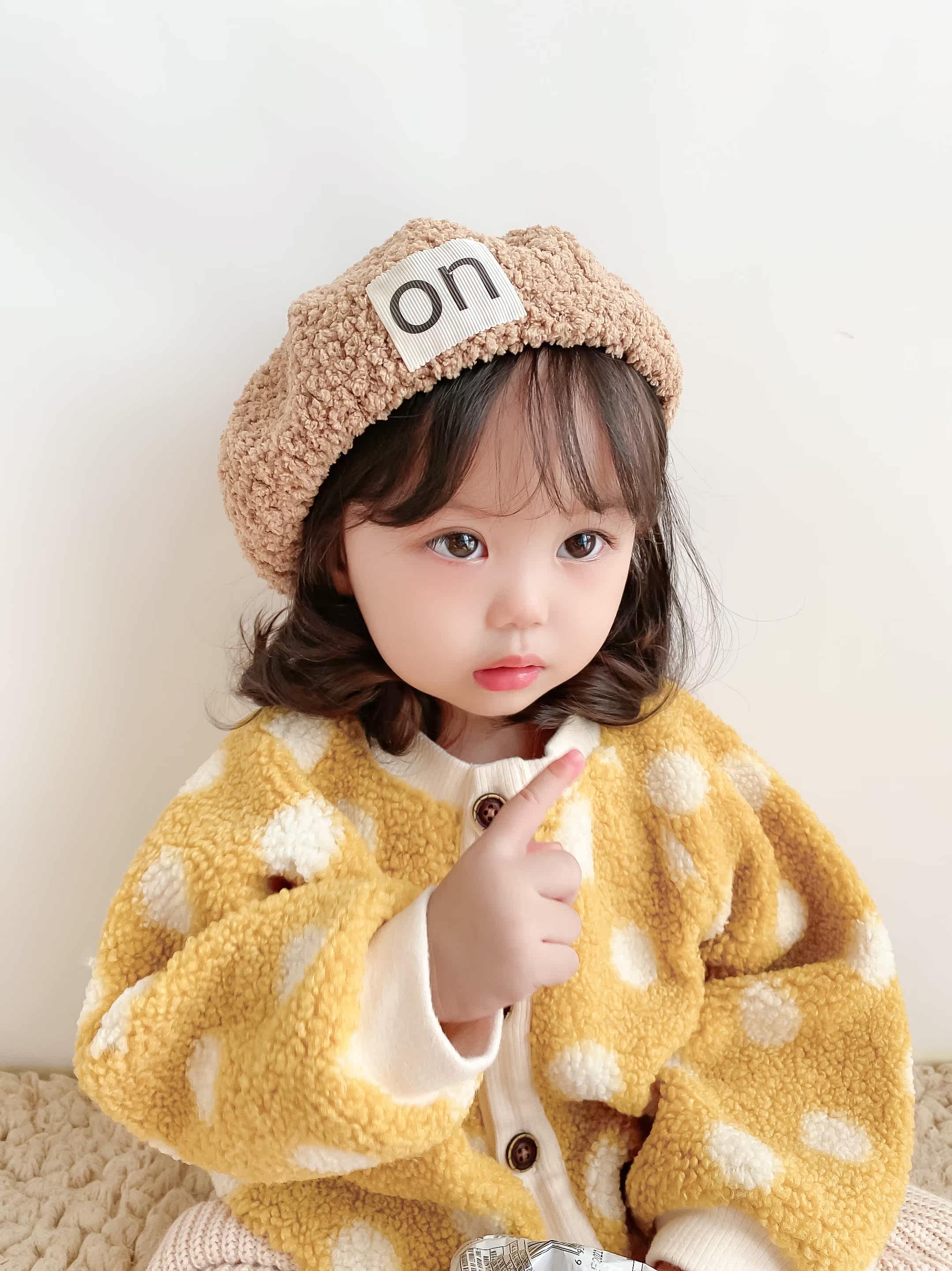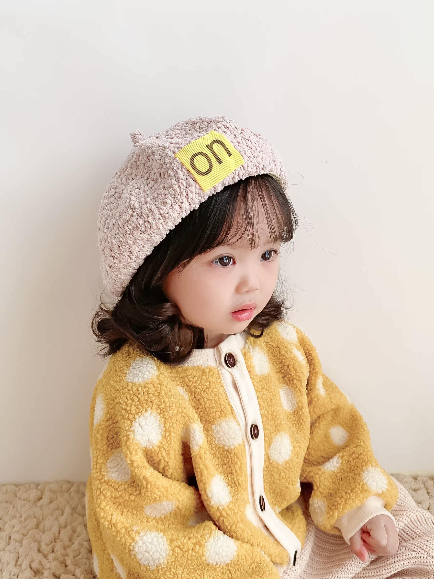 Children's hat winter Korean beret trendy girl plush baby pumpkin hat child beret hat warm boy