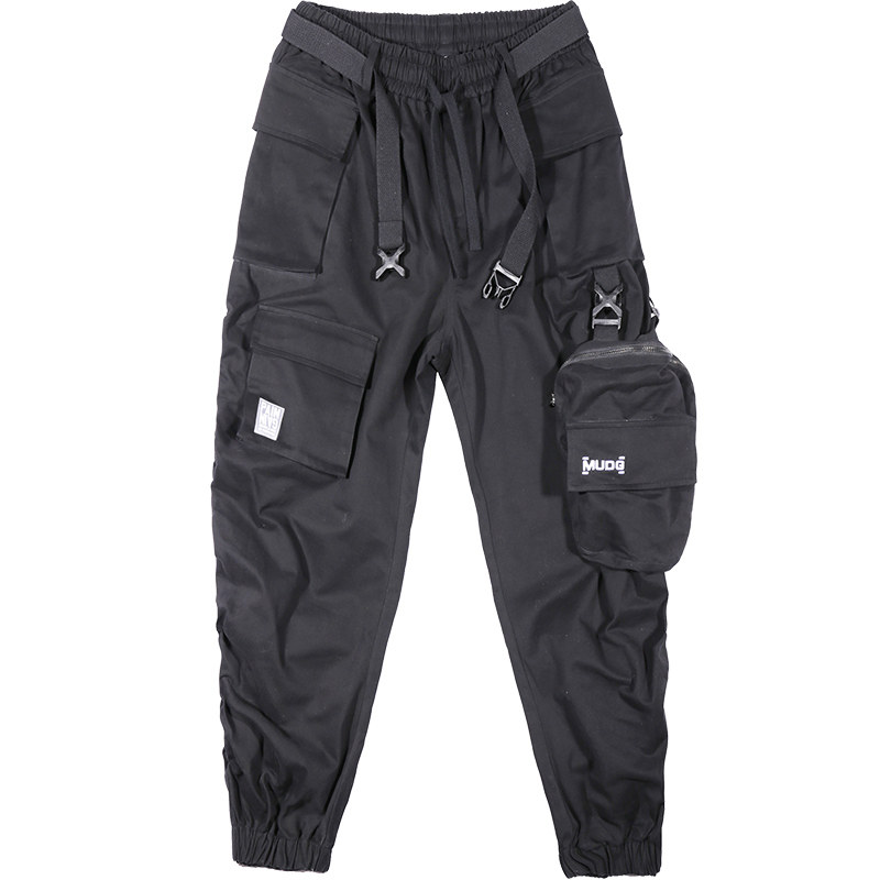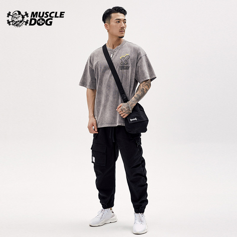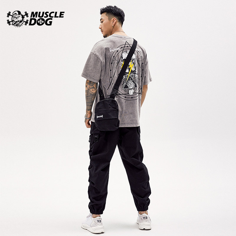 Muscle dog sports leisure fitness trousers male tide autumn loose beam foot can remove multi - pocket pants