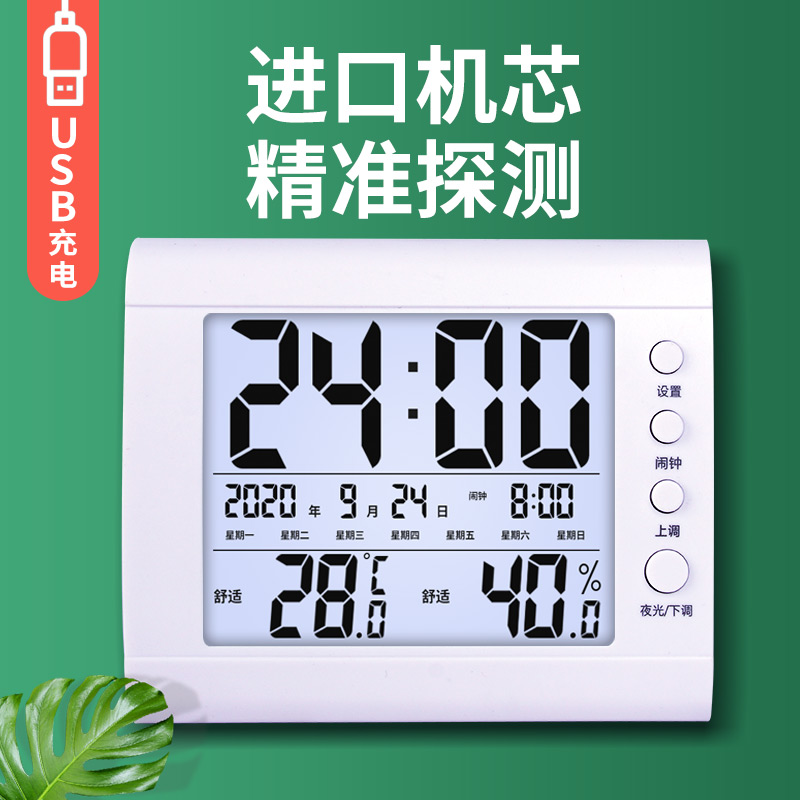 Thermometer home indoor precision electronic temperature and humidity meter baby special display high-precision wet and dry watch alarm clock