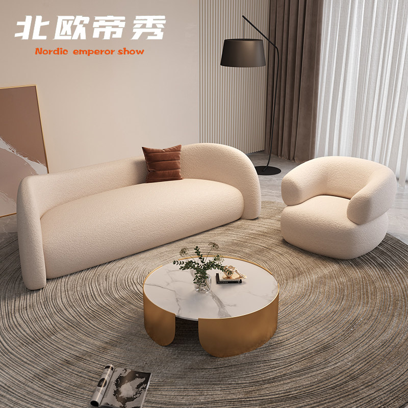 Emperors modern light and luxurious living room arched small family designer net red style beauty salon lamb suede fabric sofa
