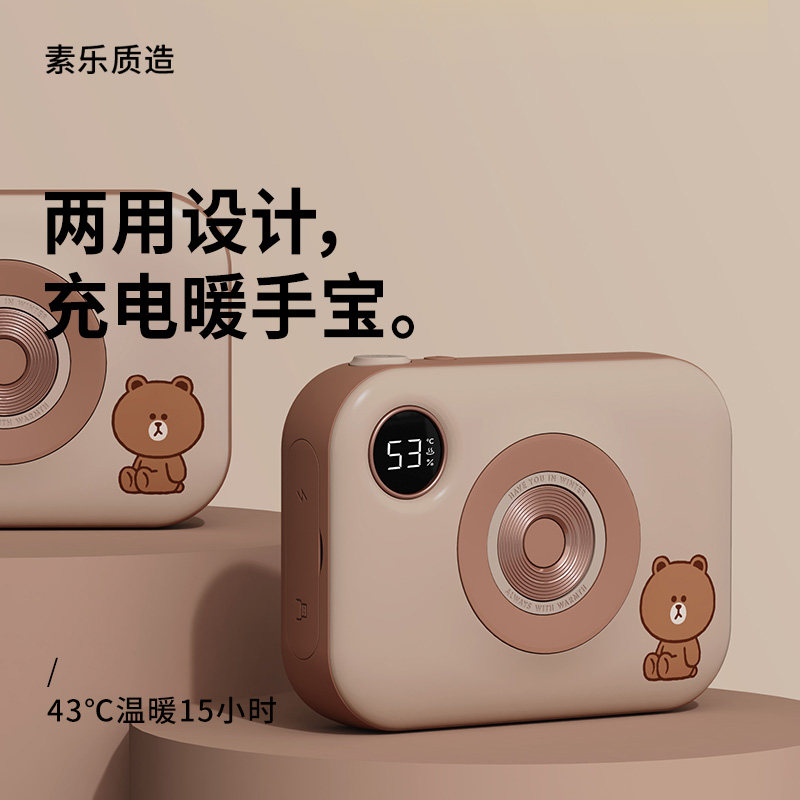 Sule Line joint name hand warmer mobile charging dual-use two-in-one double-sided self-heating warm baby camera Brown bear cute explosion-proof hot water bottle student winter heating artifact for girls