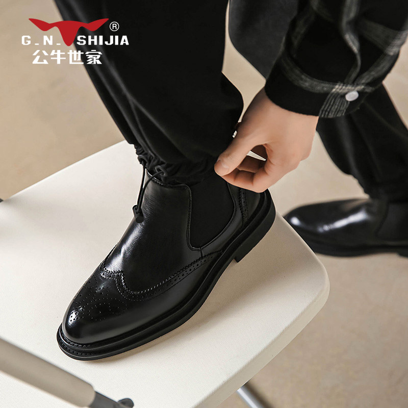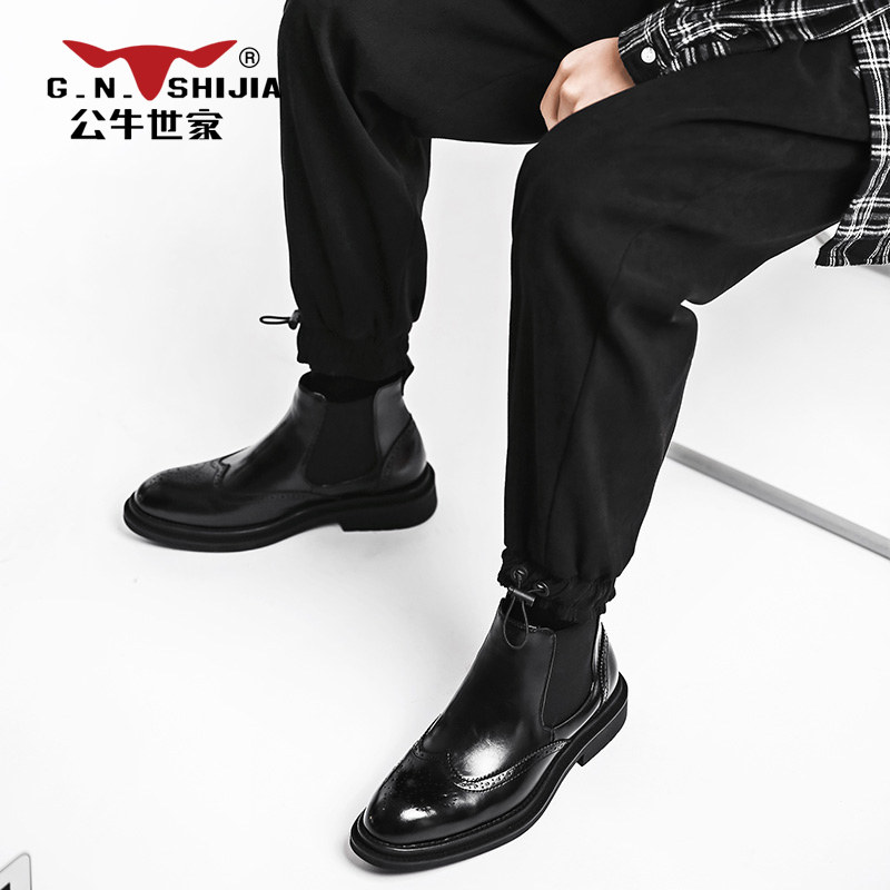 Bull World House Bullock Chelsea Boots Spring Autumn High Cylinder Leather Boots Ingléen Winnock Dpa Men Martin Boot Tide Short Boots