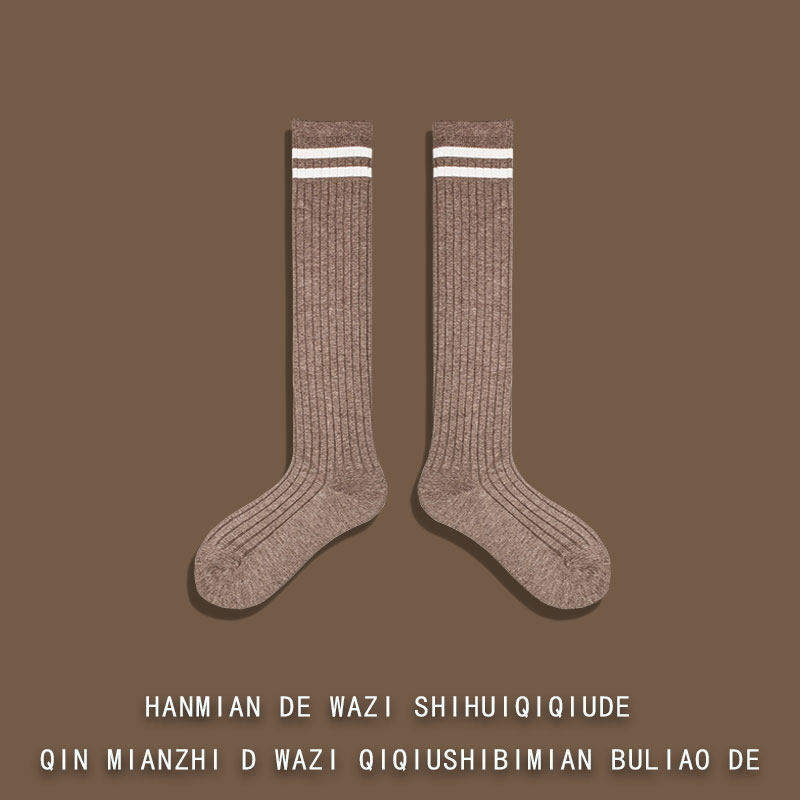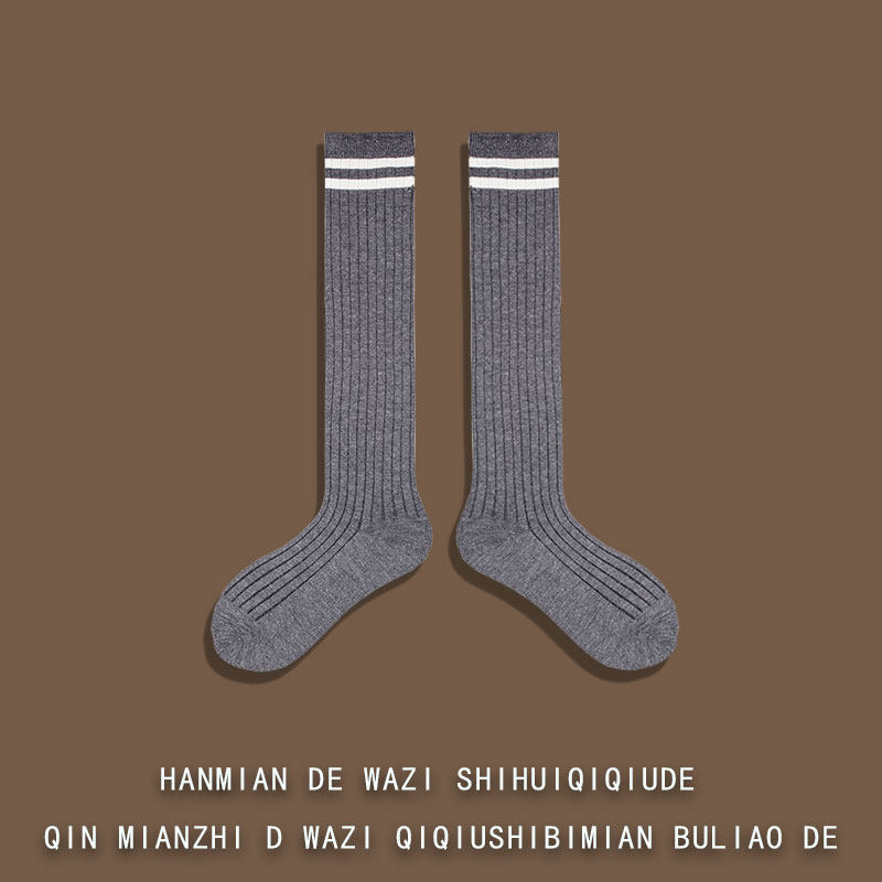 And Knee Calf Socks Two Bar Striped Pure Color Fall Extras long cylinder Sox Children Korea Japanese Department High-cylinder pure cotton