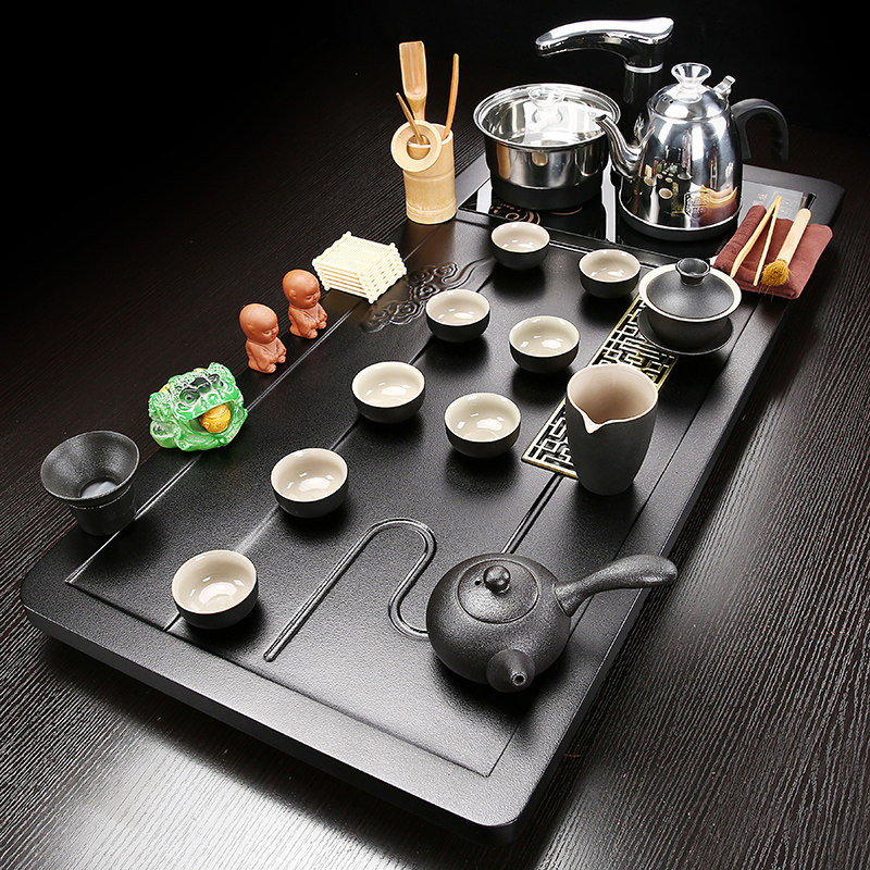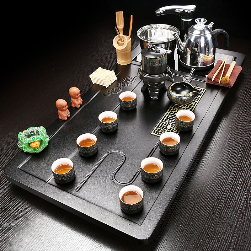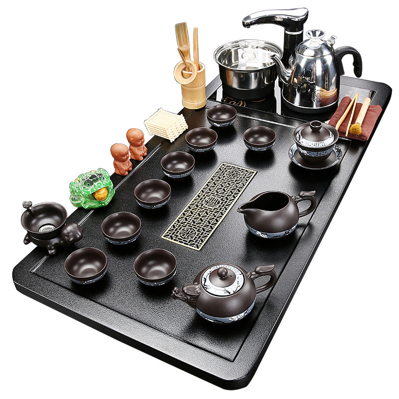 Purple Sand Tea Set Group Home Living Room Simple Solid Wood Tea Tray Whole Body Big Kung Fu Tea Terrace Fully Automatic