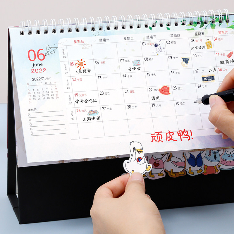 Calendar 2022 Desk Calendar Custom Logo Creativity Brief Little Freshen Han Style Office Year Personality China Wind Desktop Swing Piece Business Work Note Play Card Program This Booking Advertisement
